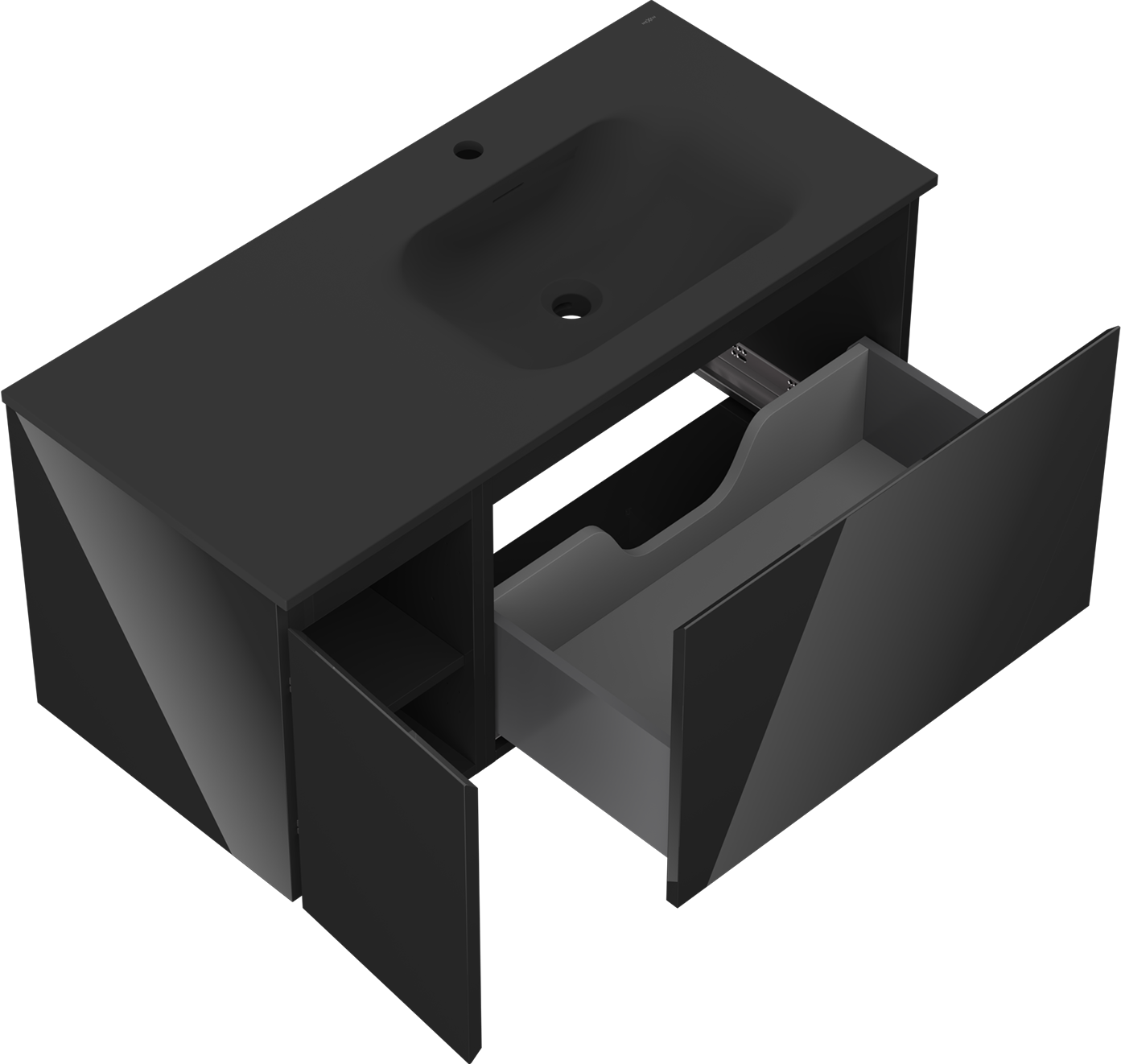 The cutout in the drawer is designed in such a way as to accommodate the siphon, which is essential in sink installations. This allows the furniture to be fully functional without having to give up drawer space for the installation.