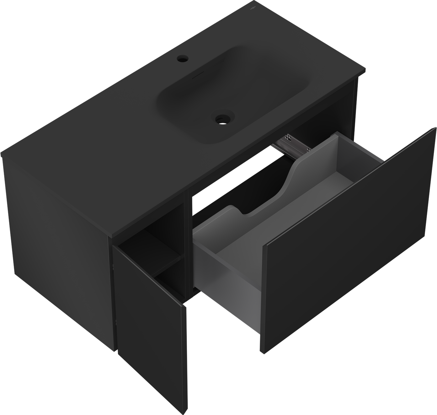 The cutout in the drawer is designed in such a way as to accommodate the siphon, which is essential in sink installations. This allows the furniture to be fully functional without having to give up drawer space for the installation.