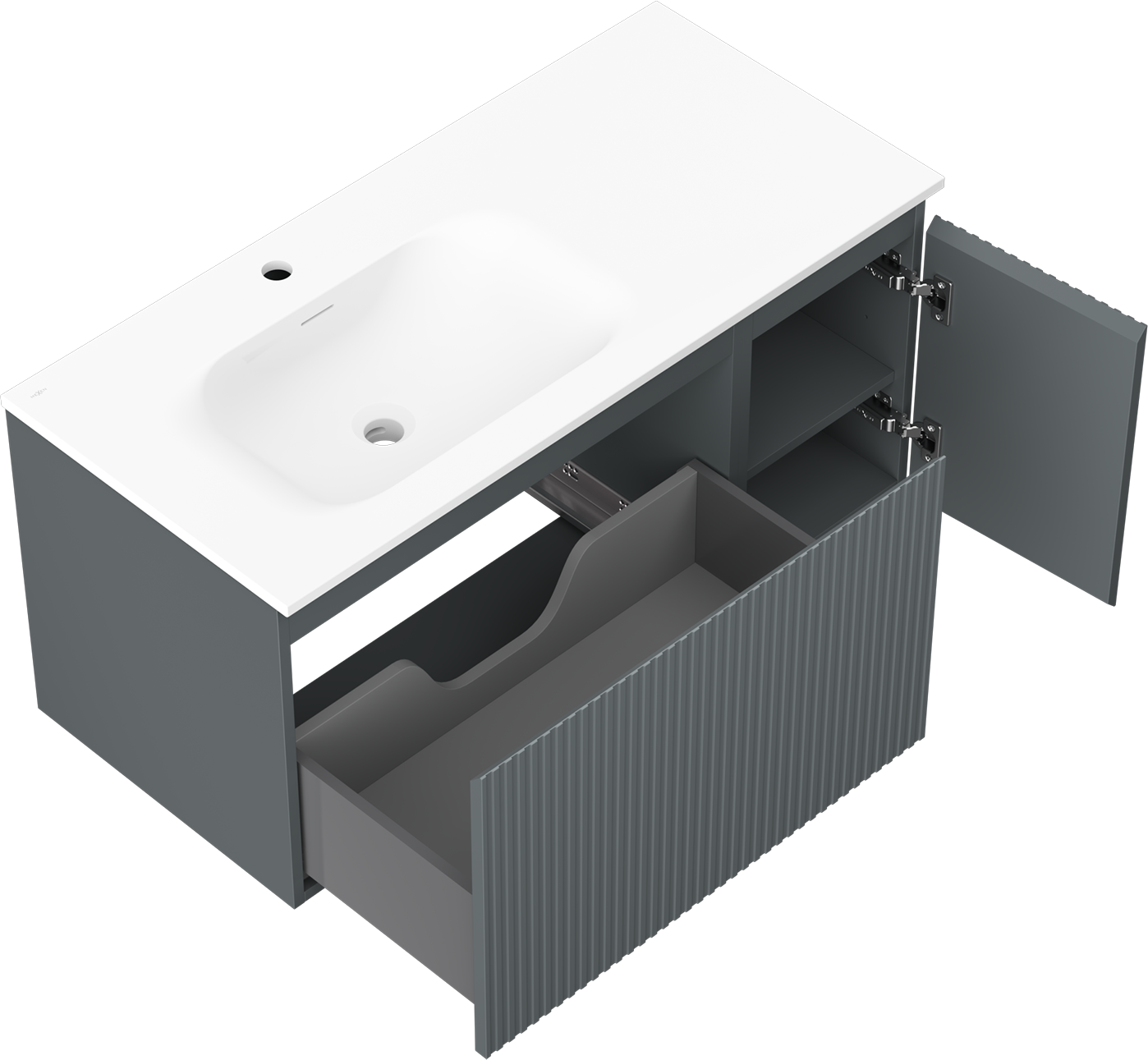 The cutout in the drawer is designed in such a way as to accommodate the siphon, which is essential in sink installations. This allows the furniture to be fully functional without having to give up drawer space for the installation.