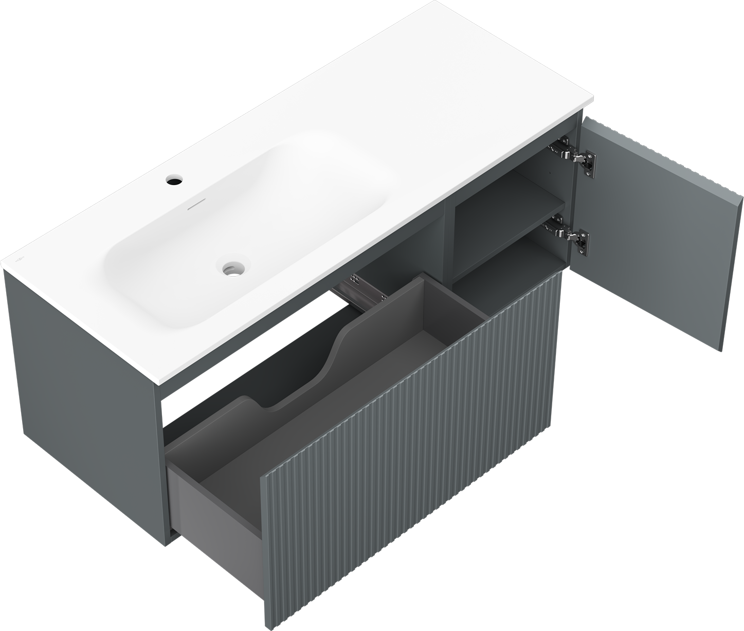 The cutout in the drawer is designed in such a way as to accommodate the siphon, which is essential in sink installations. This allows the furniture to be fully functional without having to give up drawer space for the installation.