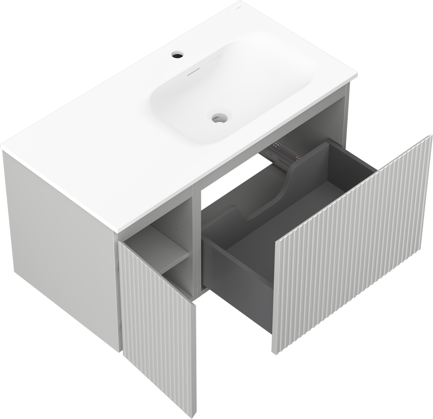 The cutout in the drawer is designed in such a way as to accommodate the siphon, which is essential in sink installations. This allows the furniture to be fully functional without having to give up drawer space for the installation.
