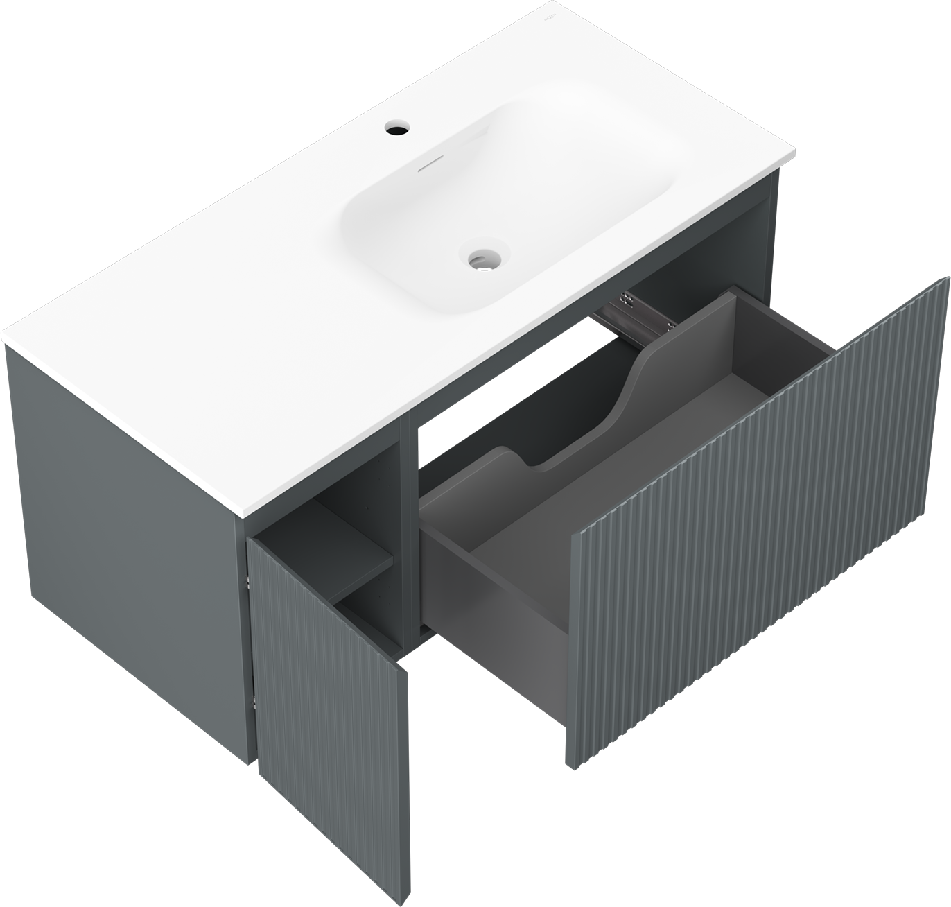 The cutout in the drawer is designed in such a way as to accommodate the siphon, which is essential in sink installations. This allows the furniture to be fully functional without having to give up drawer space for the installation.