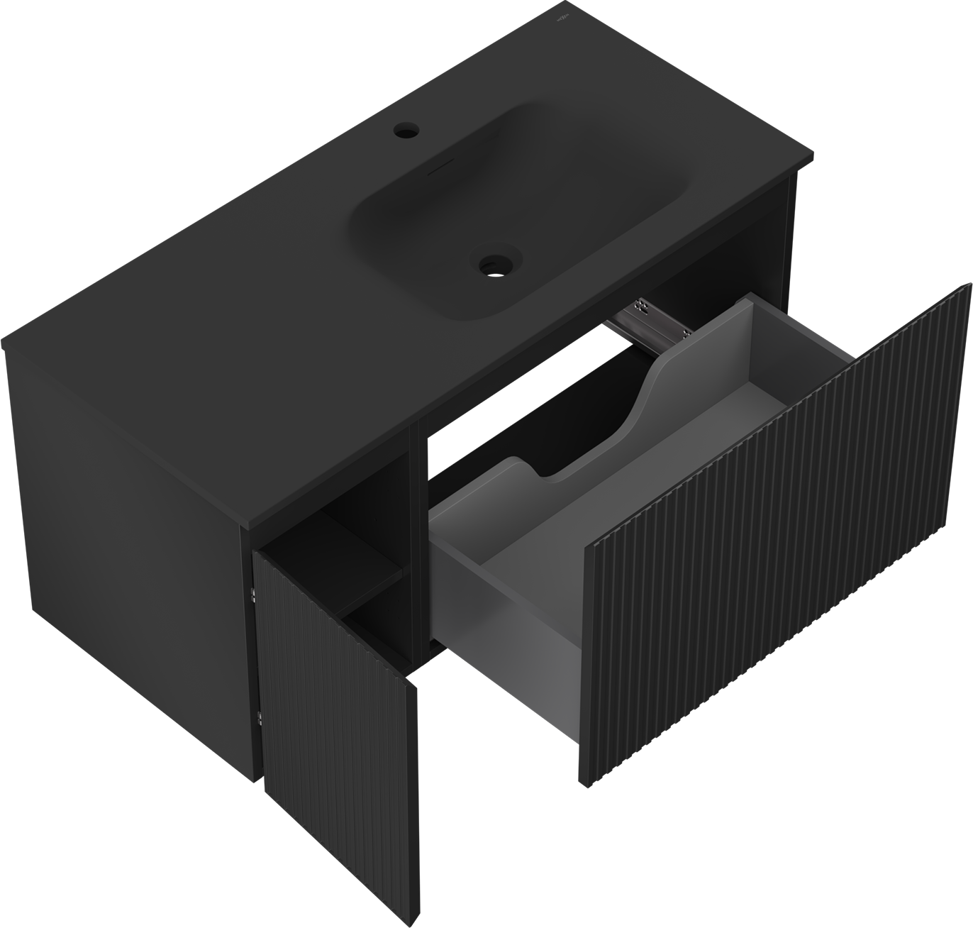 The cutout in the drawer is designed in such a way as to accommodate the siphon, which is essential in sink installations. This allows the furniture to be fully functional without having to give up drawer space for the installation.