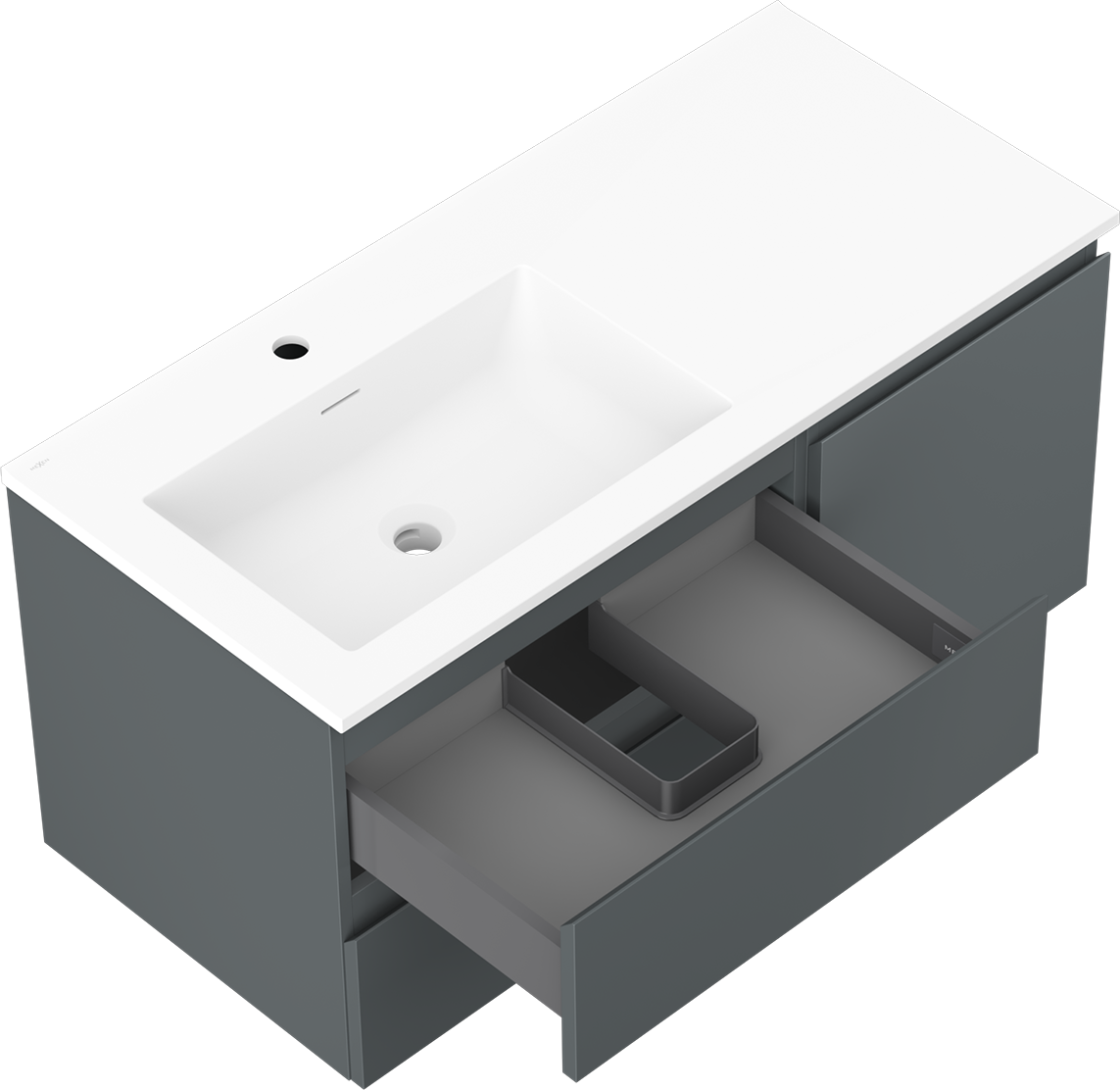 The cutout in the drawer is designed in such a way as to accommodate the siphon, which is essential in sink installations. This allows the furniture to be fully functional without having to give up drawer space for the installation.