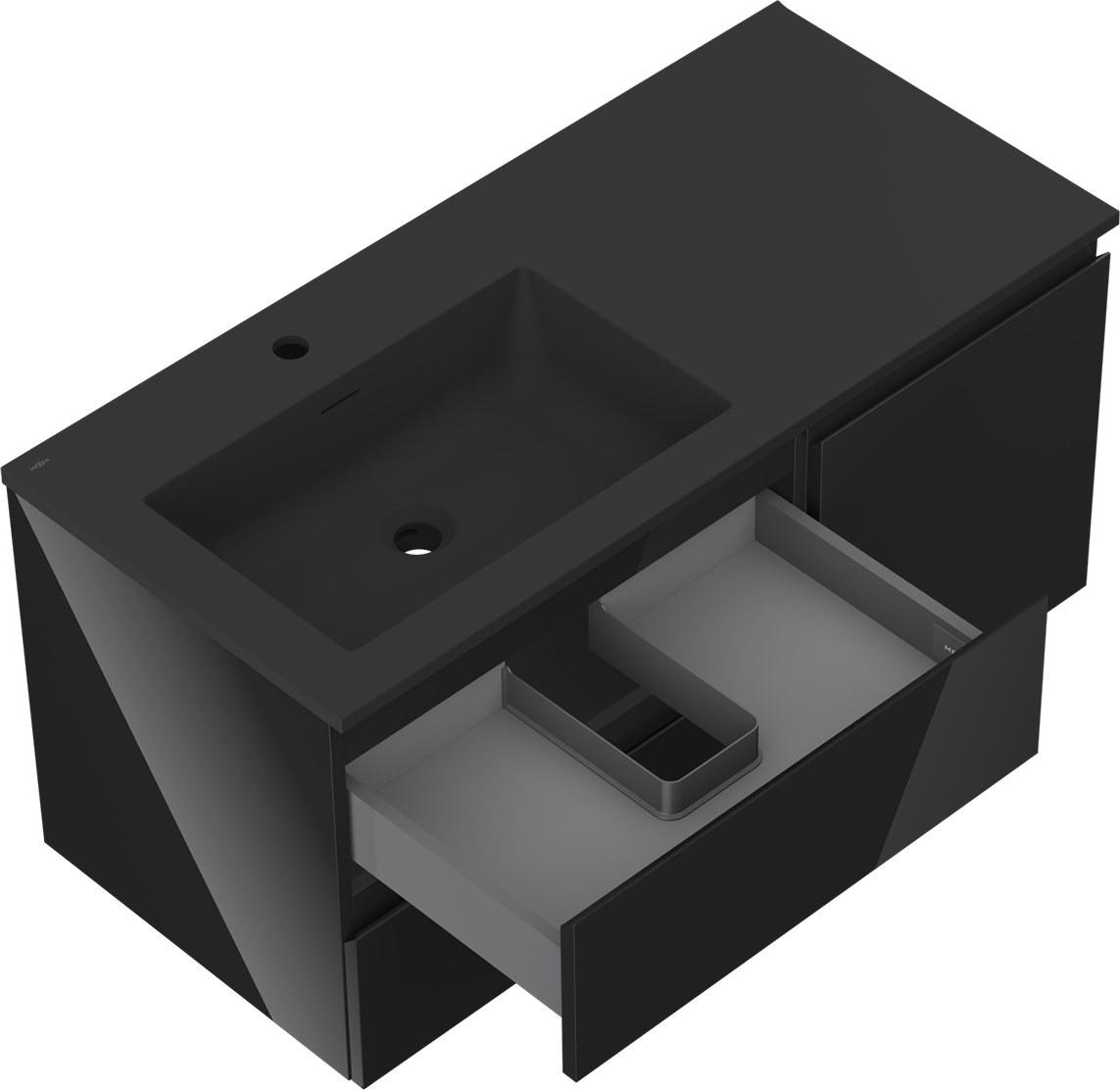 The cutout in the drawer is designed in such a way as to accommodate the siphon, which is essential in sink installations. This allows the furniture to be fully functional without having to give up drawer space for the installation.