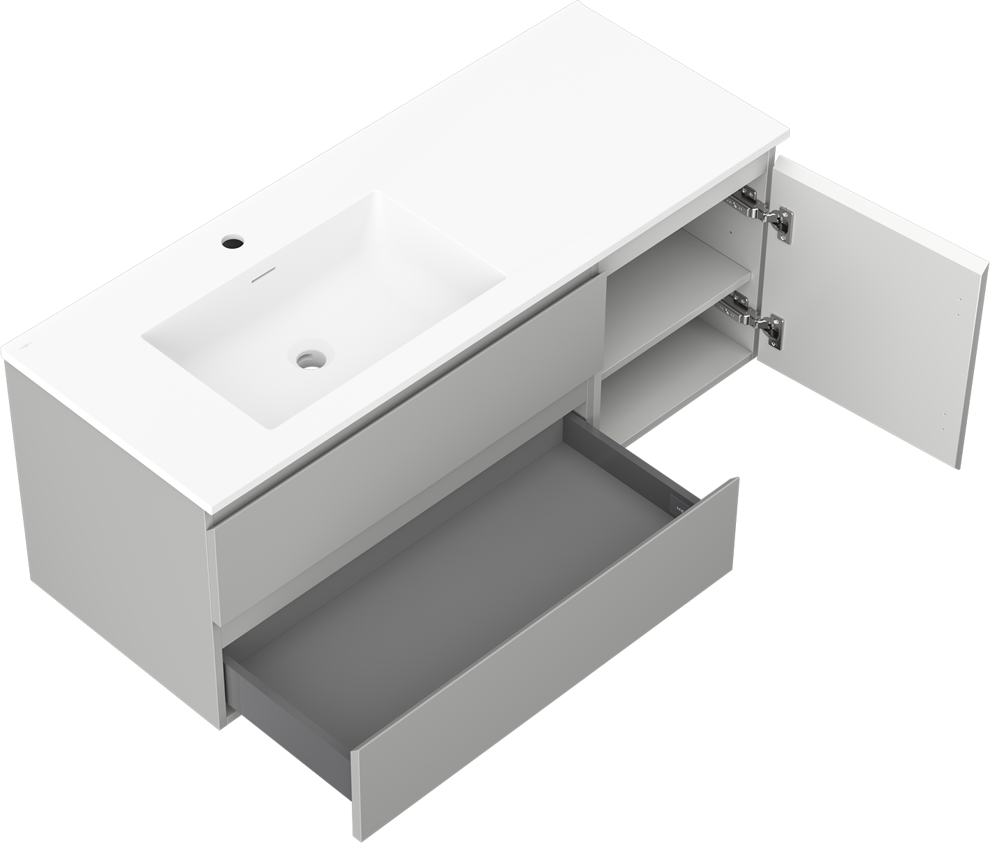 Our modular bathroom furniture can be combined in various colour configurations, allowing for complete personalisation. You can choose both the appearance and functions of individual elements, enabling you to adapt the furniture to your own stylistic and functional preferences.