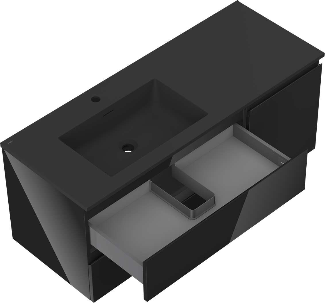 The cutout in the drawer is designed in such a way as to accommodate the siphon, which is essential in sink installations. This allows the furniture to be fully functional without having to give up drawer space for the installation.