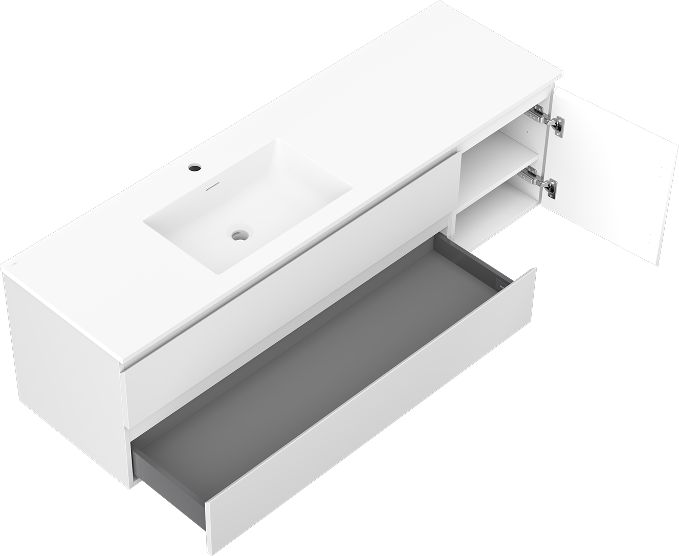 Our modular bathroom furniture can be combined in various colour configurations, allowing for complete personalisation. You can choose both the appearance and functions of individual elements, enabling you to adapt the furniture to your own stylistic and functional preferences.