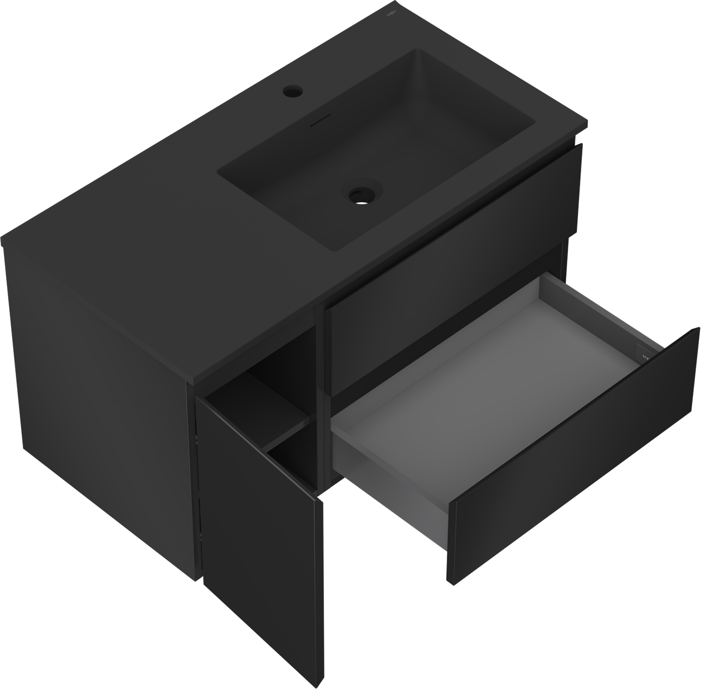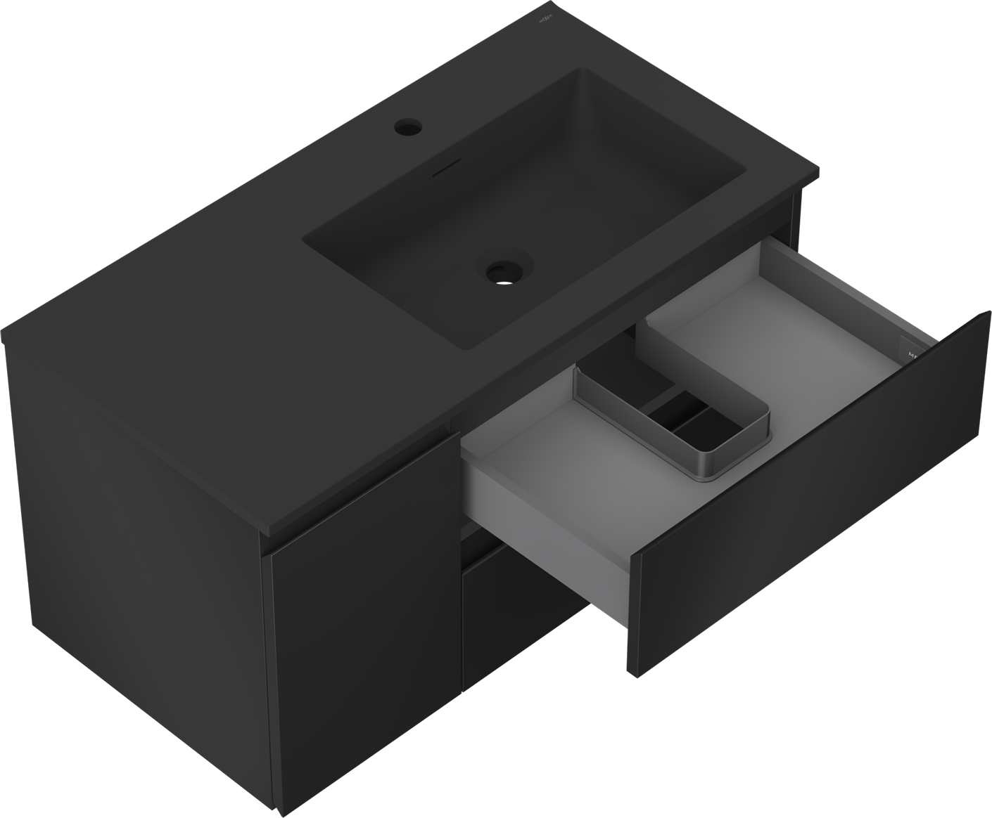 The cutout in the drawer is designed in such a way as to accommodate the siphon, which is essential in sink installations. This allows the furniture to be fully functional without having to give up drawer space for the installation.