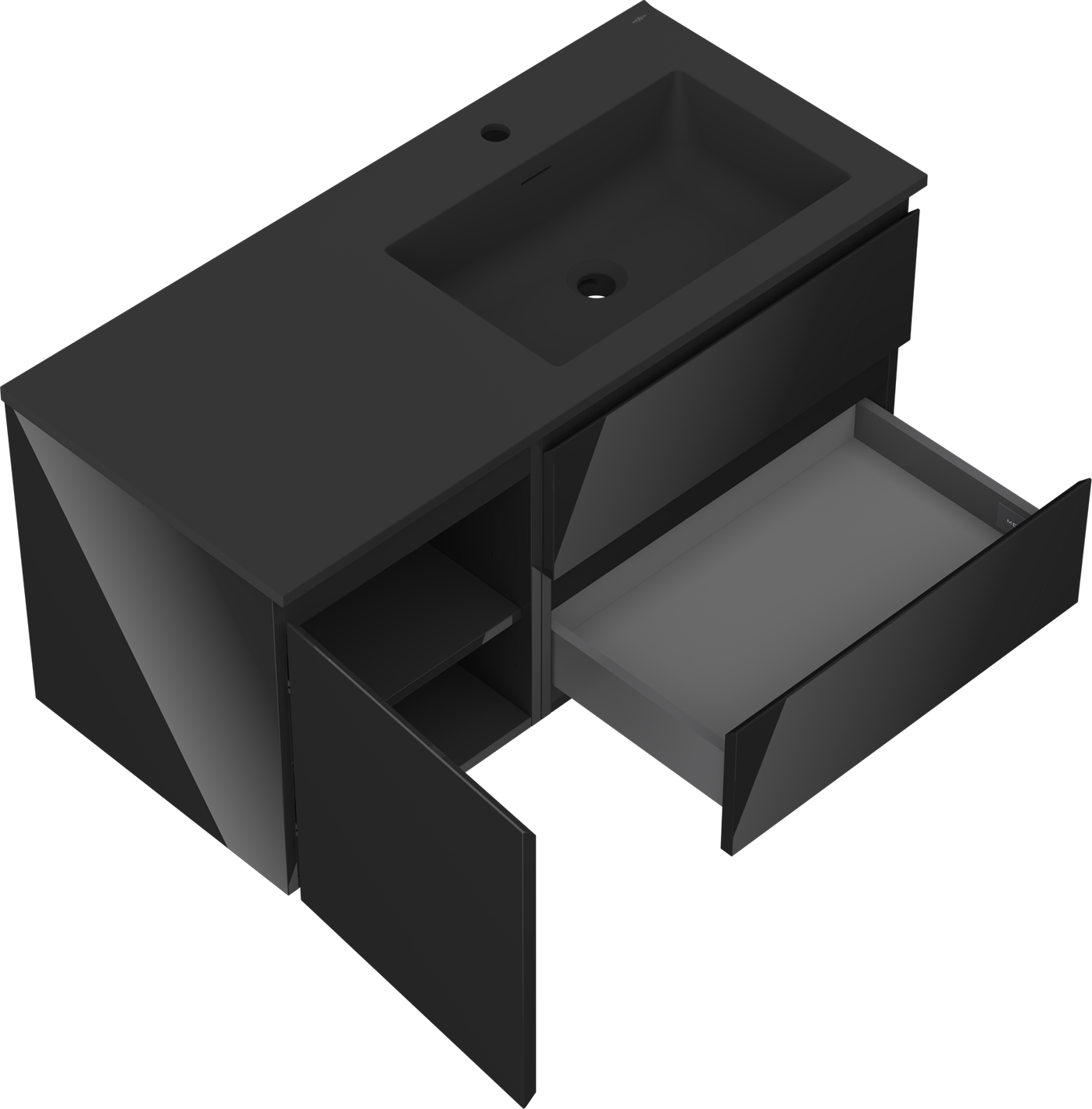 The cutout in the drawer is designed in such a way as to accommodate the siphon, which is essential in sink installations. This allows the furniture to be fully functional without having to give up drawer space for the installation.
