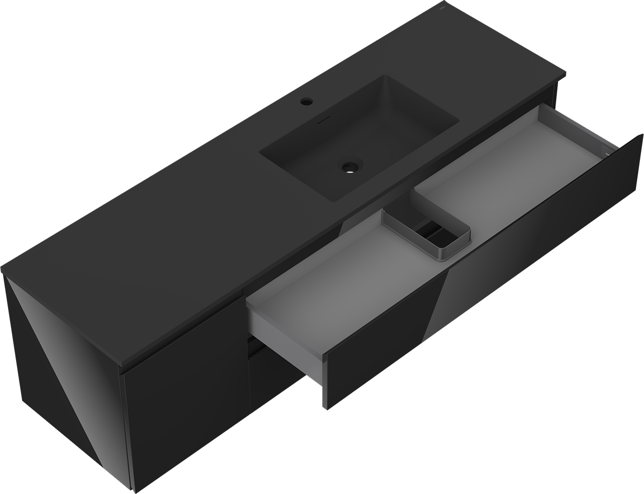 The cutout in the drawer is designed in such a way as to accommodate the siphon, which is essential in sink installations. This allows the furniture to be fully functional without having to give up drawer space for the installation.