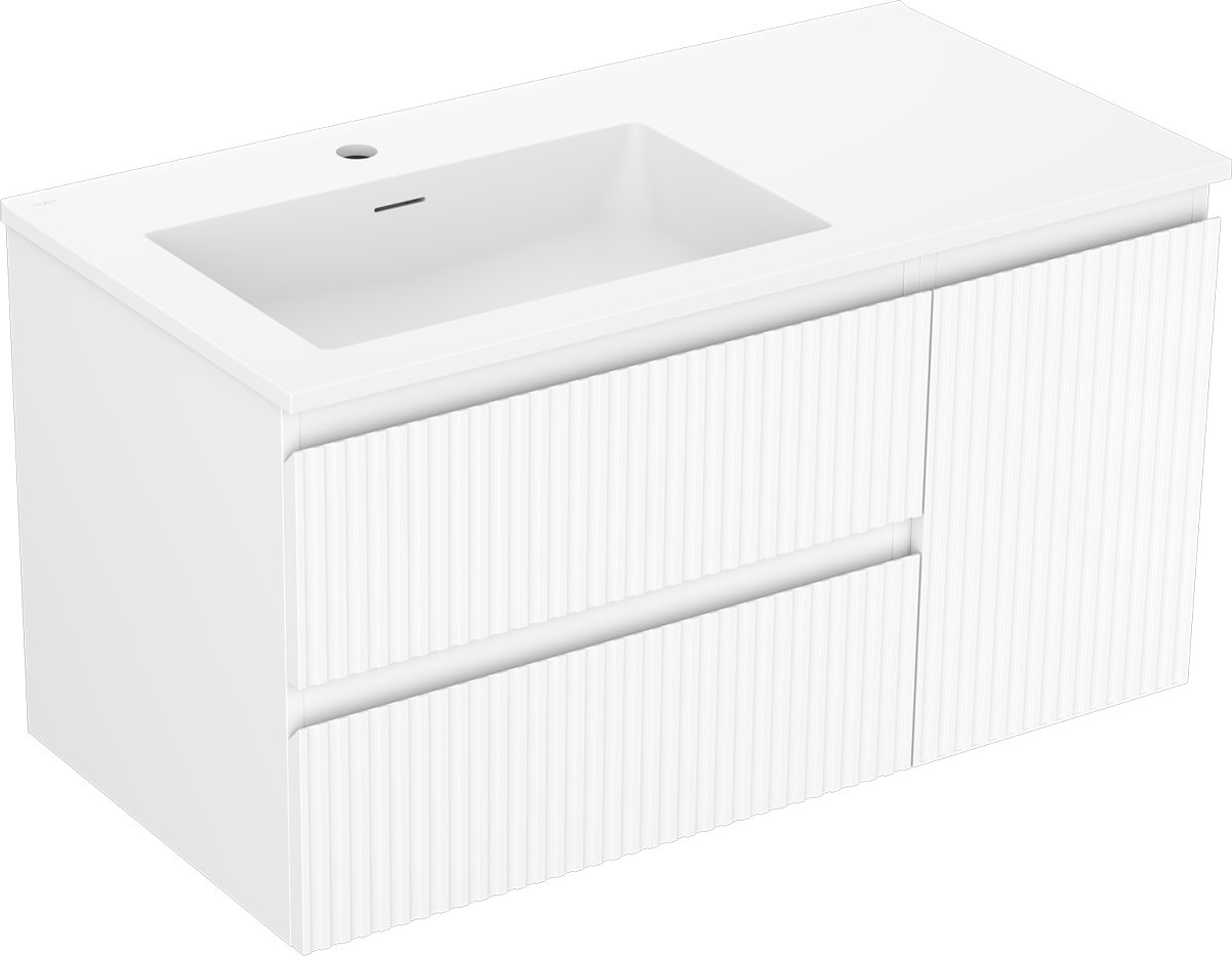 Mexen Rivel bathroom cabinet 90 cm with Otis left sink, 2S, 1D, fluted, white matte - 91A23-09047-3-BBFFF01-W18L01