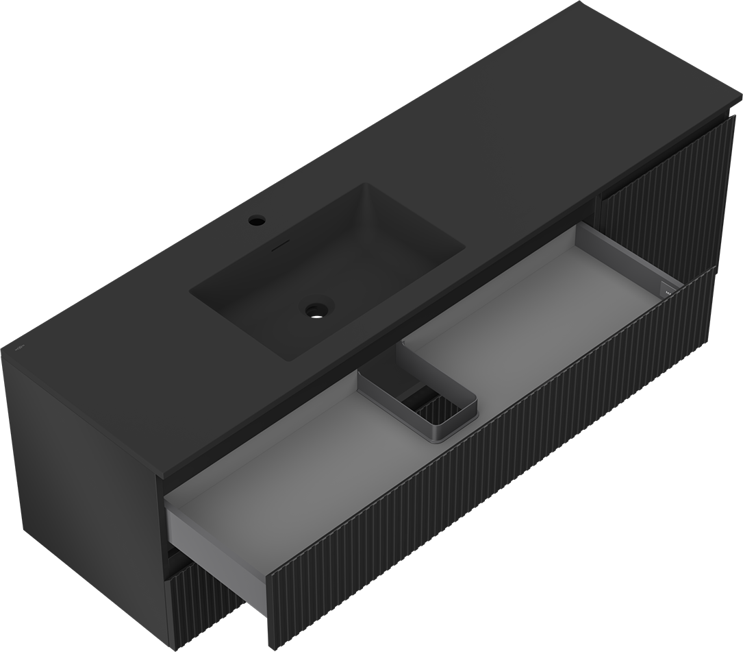 The cutout in the drawer is designed in such a way as to accommodate the siphon, which is essential in sink installations. This allows the furniture to be fully functional without having to give up drawer space for the installation.