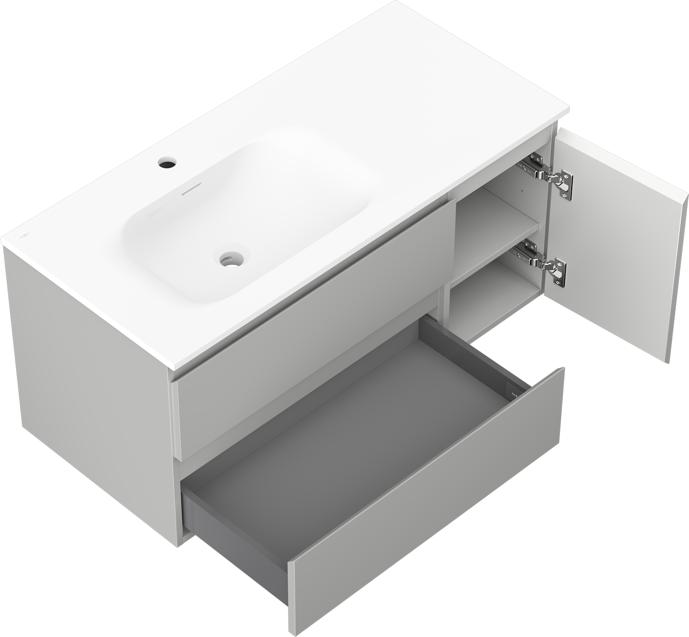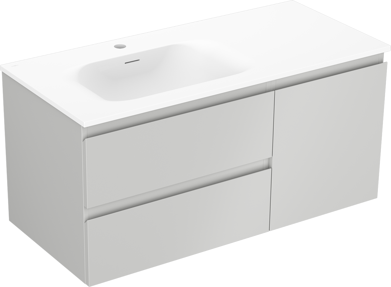 Mexen Orio 100 cm bathroom cabinet with left Vela sink, 2S, 1D, gray matte/white matte - 91A13-10047-3-BBFFF62-W23L01