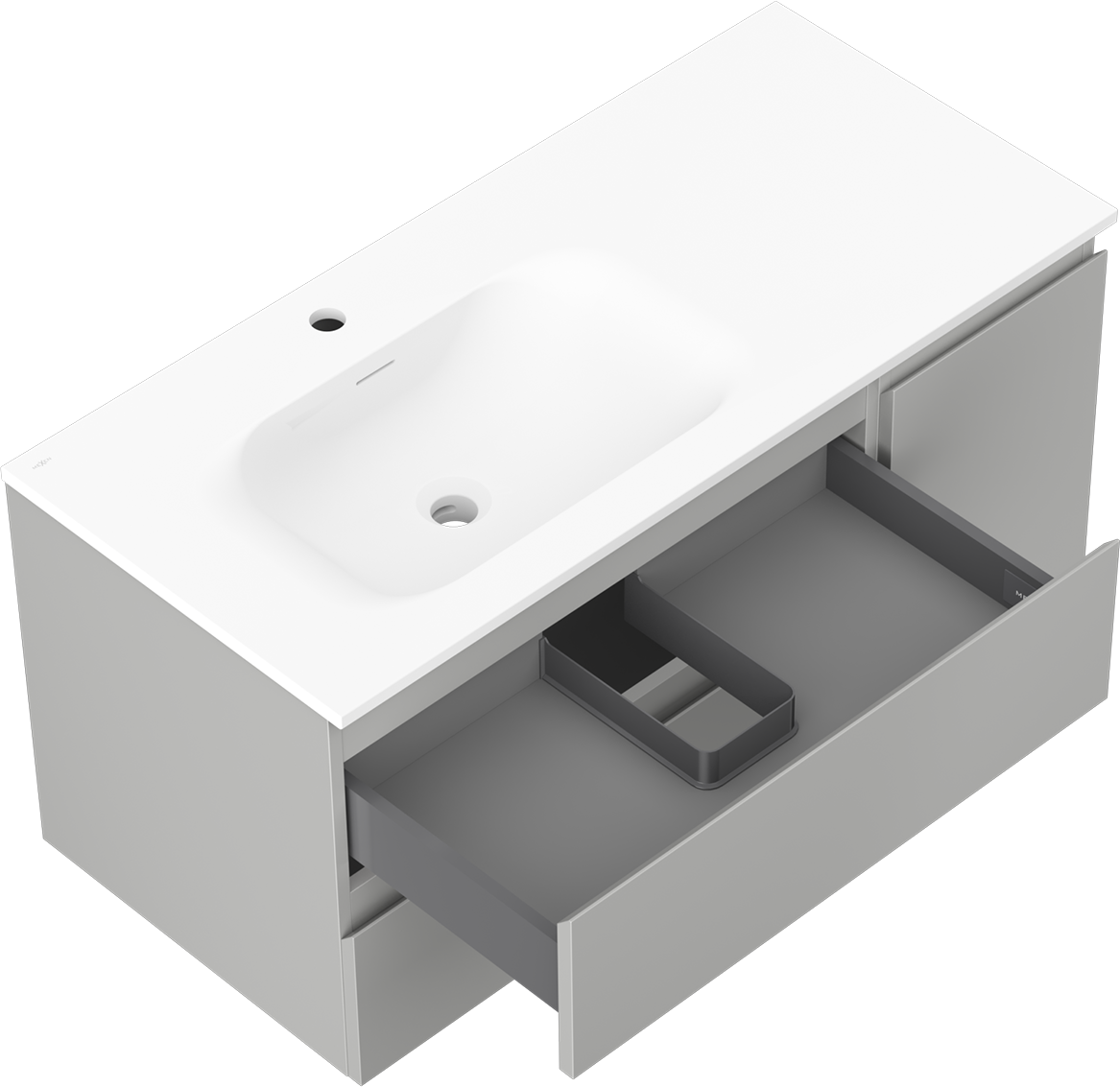 The cutout in the drawer is designed in such a way as to accommodate the siphon, which is essential in sink installations. This allows the furniture to be fully functional without having to give up drawer space for the installation.