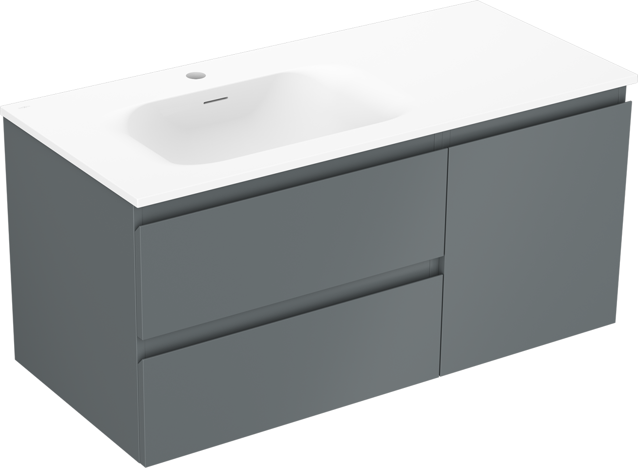 Mexen Orio bathroom cabinet 100 cm with Vela left sink, 2S, 1D, matte graphite/white matte - 91A13-10047-3-BBFFF66-W23L01
