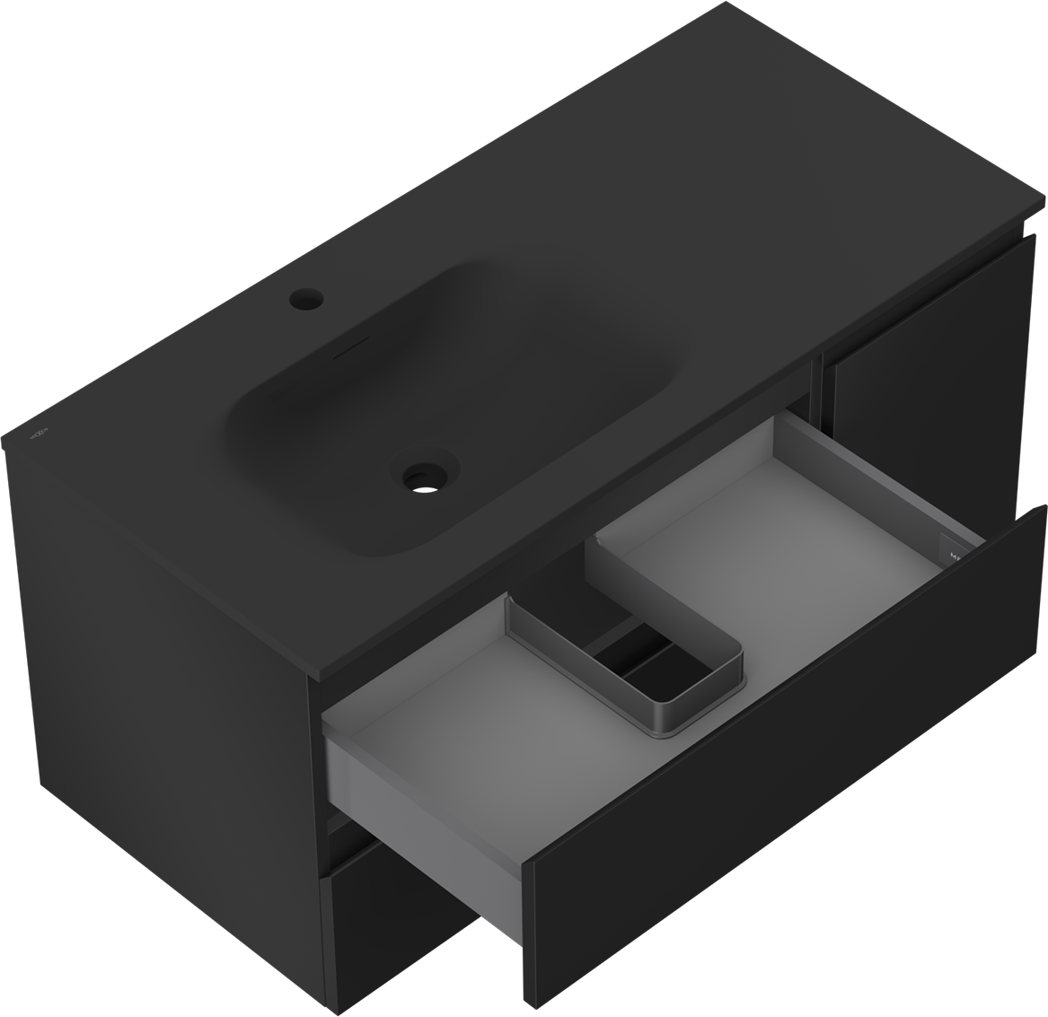 Mexen Orio 100 cm Bathroom Cabinet with Left Sink Vela, 2 Drawers, 1 Door, Matte Black - 91A13-10047-3-BBFFF71-W23L71