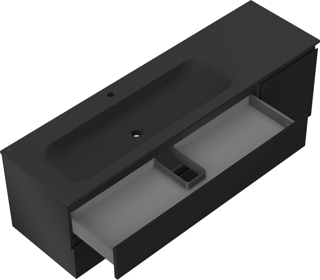 The cutout in the drawer is designed in such a way as to accommodate the siphon, which is essential in sink installations. This allows the furniture to be fully functional without having to give up drawer space for the installation.
