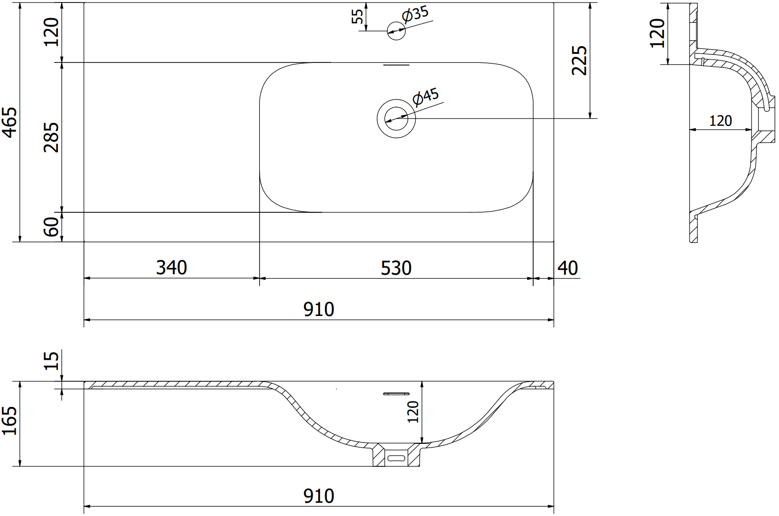 The washbasin has an opening where we can install a tap. This allows for saving valuable space in the bathroom and enhances its aesthetics. This solution also makes it easier to maintain cleanliness around the washbasin.