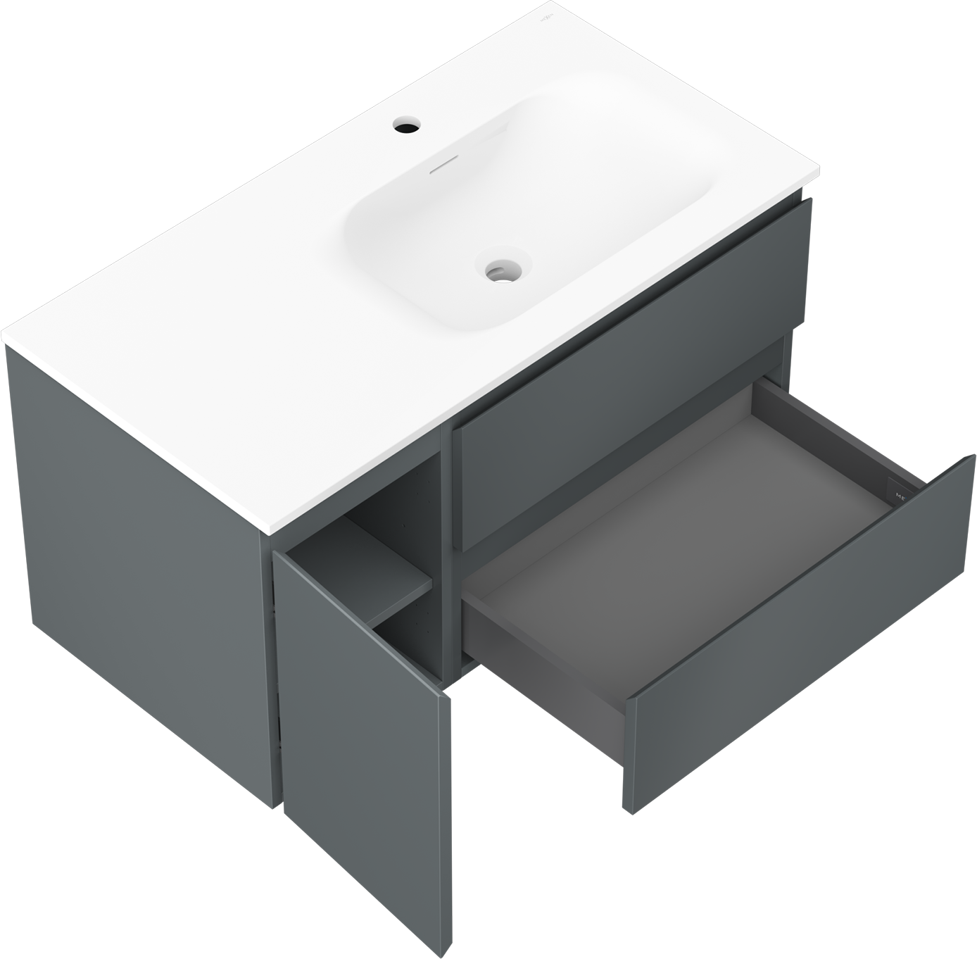 The cutout in the drawer is designed in such a way as to accommodate the siphon, which is essential in sink installations. This allows the furniture to be fully functional without having to give up drawer space for the installation.