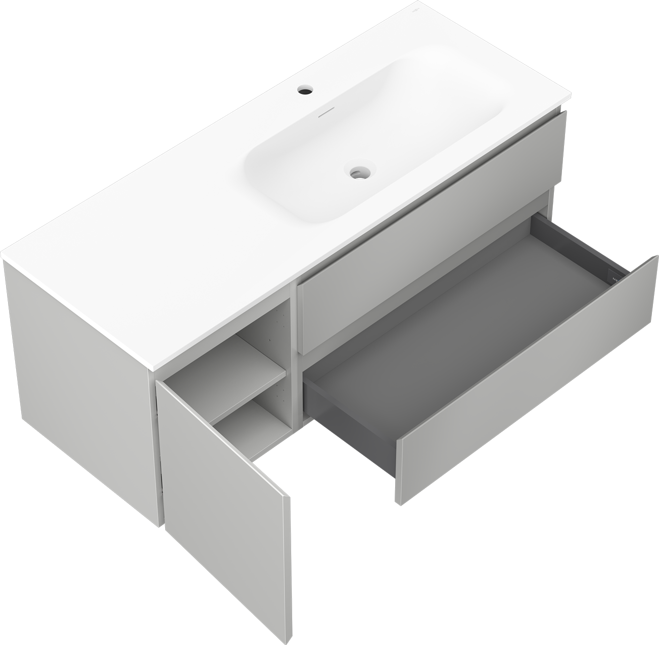 Our modular bathroom furniture can be combined in various colour configurations, allowing for complete personalisation. You can choose both the appearance and functions of individual elements, enabling you to adapt the furniture to your own stylistic and functional preferences.