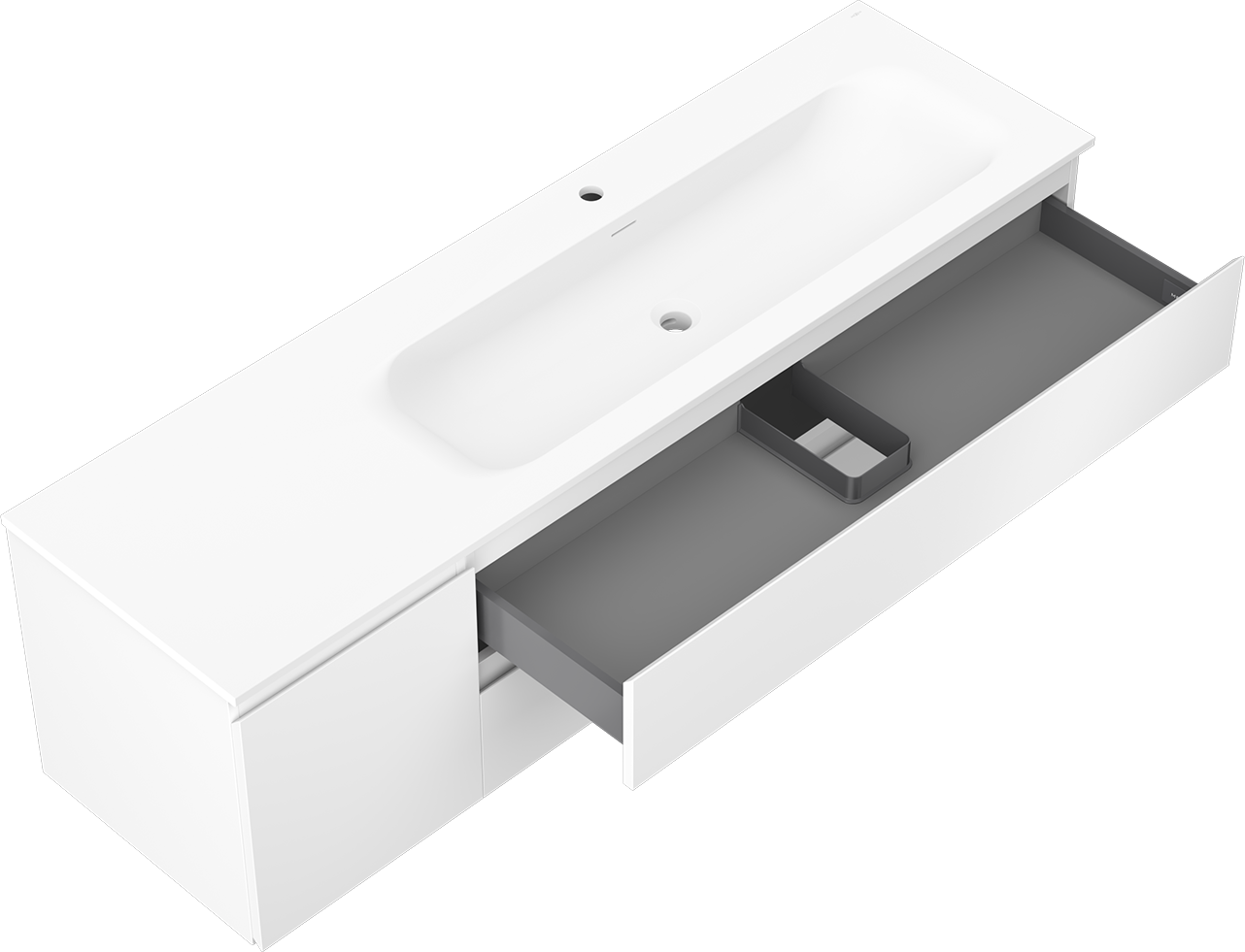 The cutout in the drawer is designed in such a way as to accommodate the siphon, which is essential in sink installations. This allows the furniture to be fully functional without having to give up drawer space for the installation.