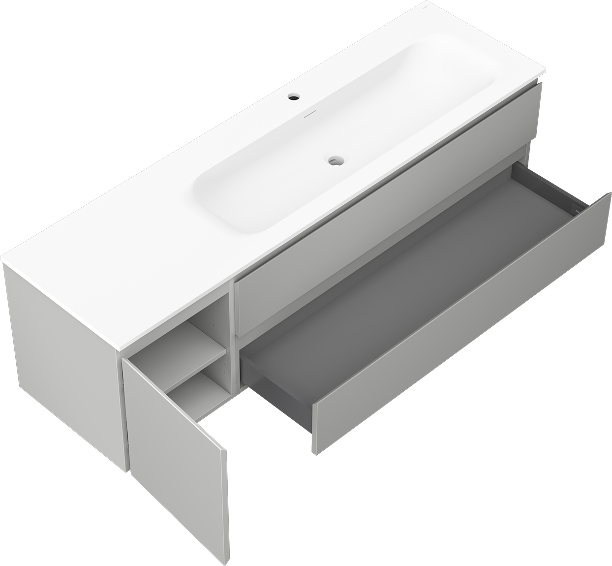 Our modular bathroom furniture can be combined in various colour configurations, allowing for complete personalisation. You can choose both the appearance and functions of individual elements, enabling you to adapt the furniture to your own stylistic and functional preferences.