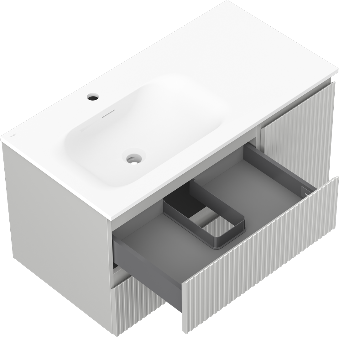 The cutout in the drawer is designed in such a way as to accommodate the siphon, which is essential in sink installations. This allows the furniture to be fully functional without having to give up drawer space for the installation.