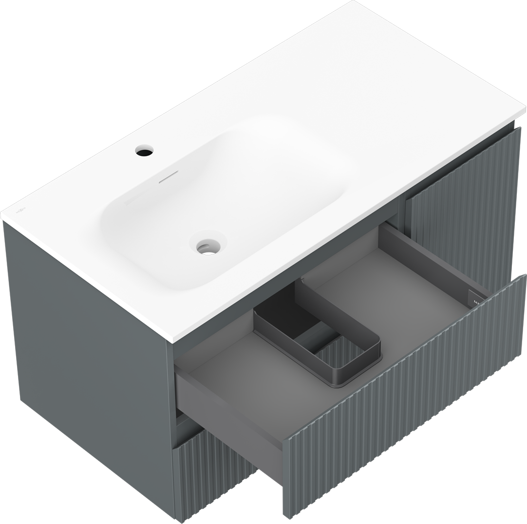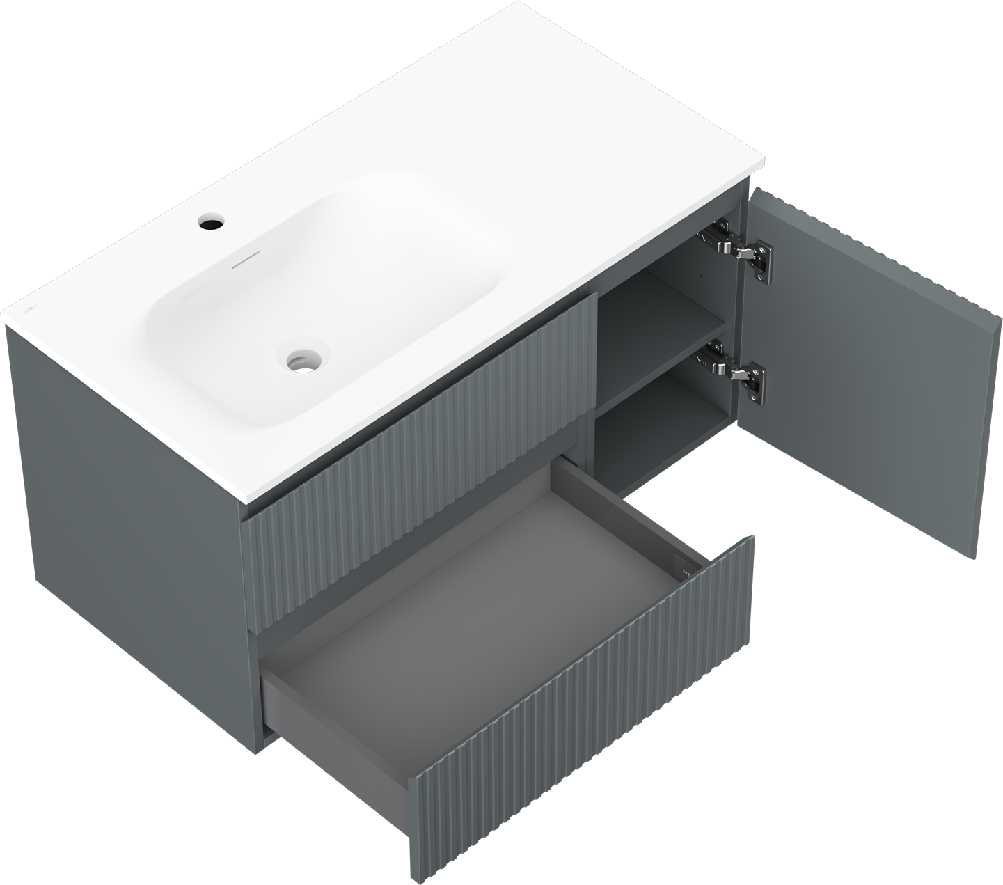 The cutout in the drawer is designed in such a way as to accommodate the siphon, which is essential in sink installations. This allows the furniture to be fully functional without having to give up drawer space for the installation.