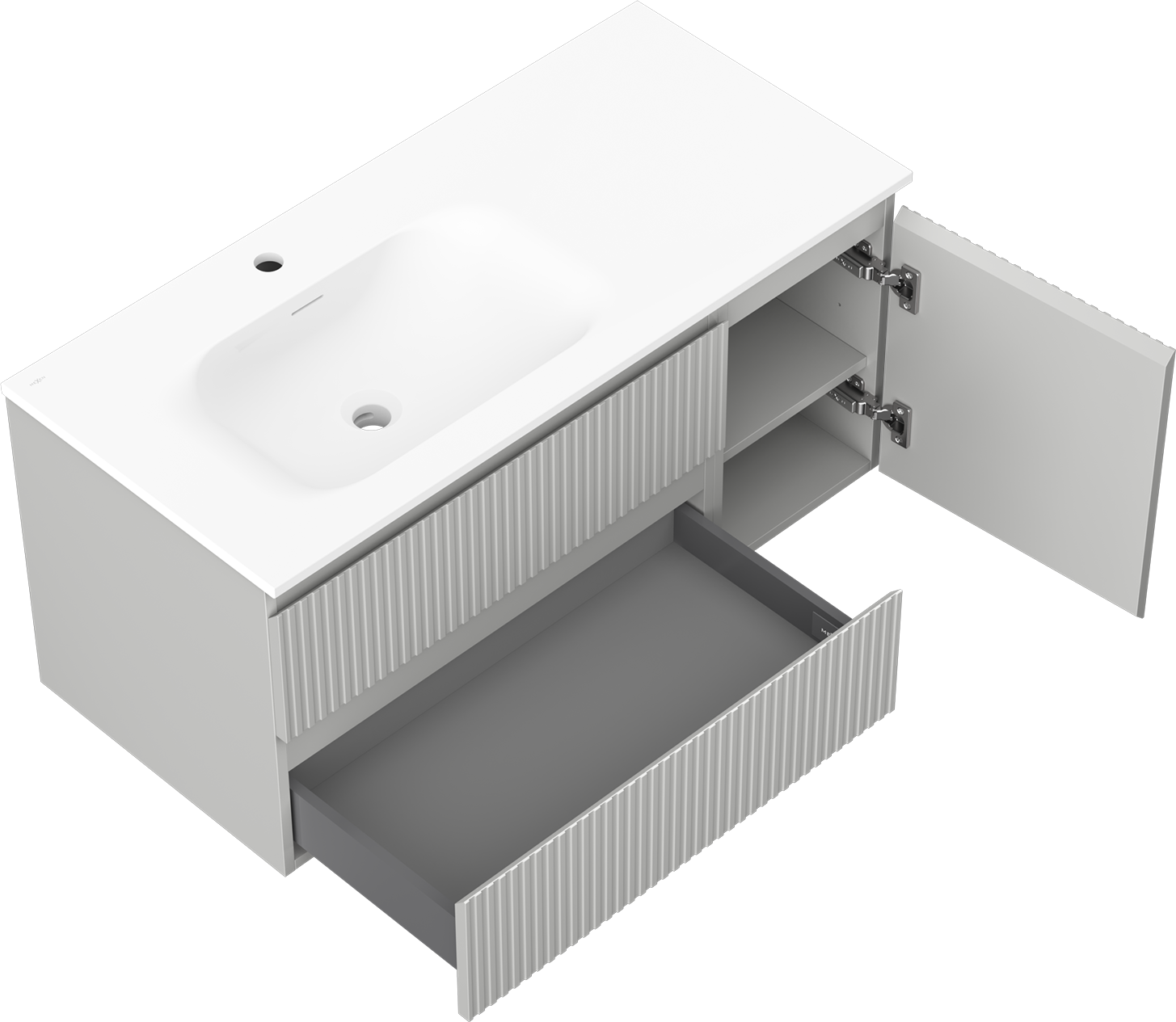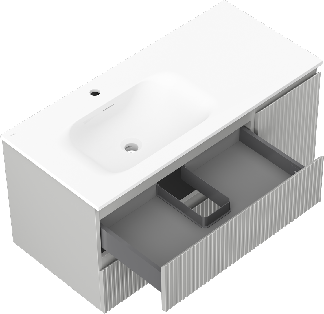 The cutout in the drawer is designed in such a way as to accommodate the siphon, which is essential in sink installations. This allows the furniture to be fully functional without having to give up drawer space for the installation.