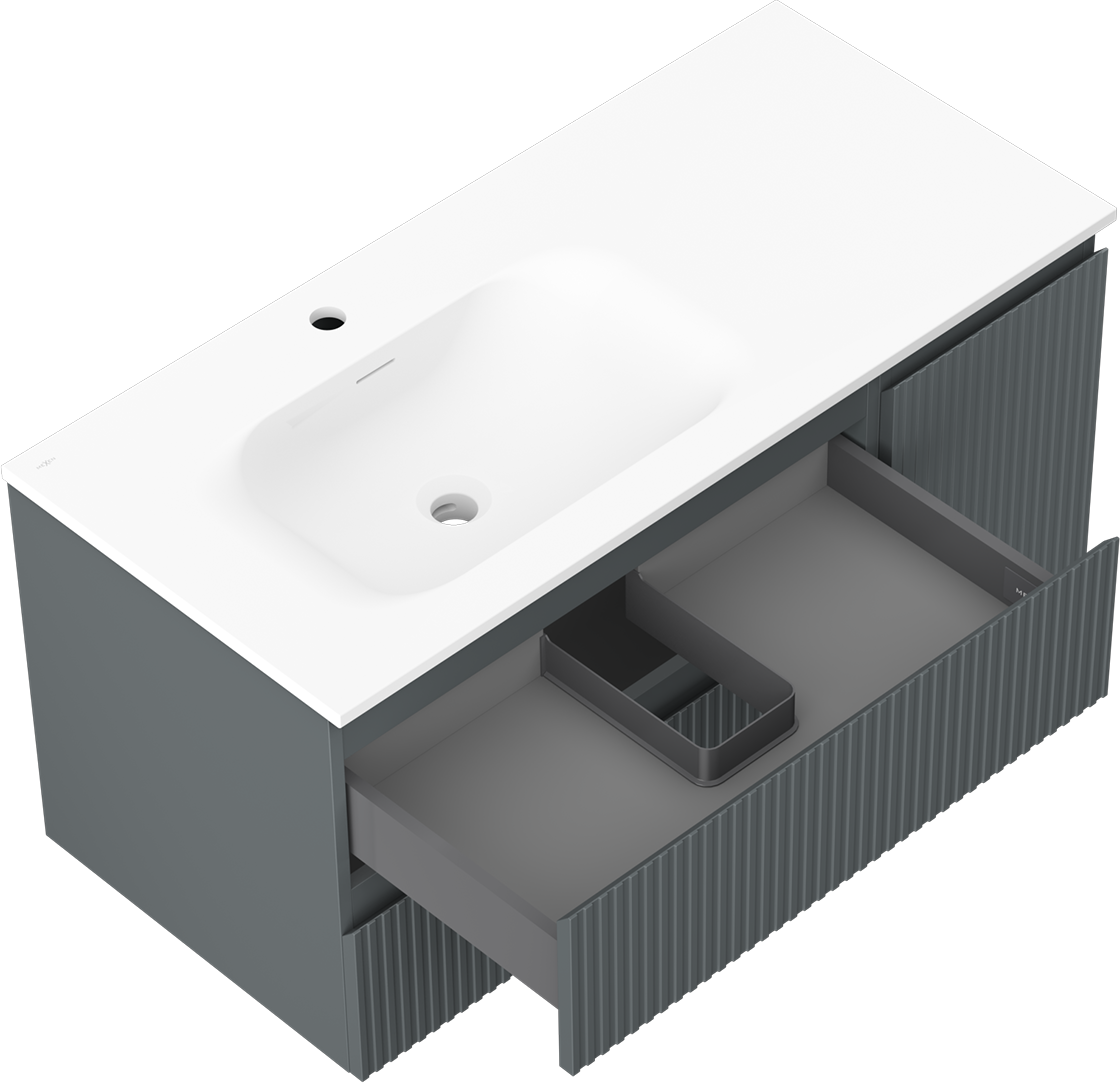 The cutout in the drawer is designed in such a way as to accommodate the siphon, which is essential in sink installations. This allows the furniture to be fully functional without having to give up drawer space for the installation.