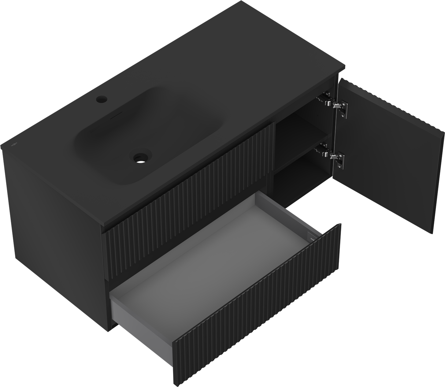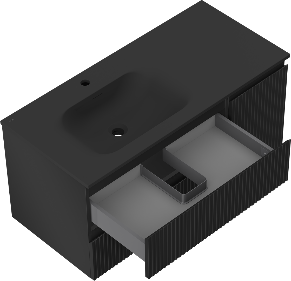 The cutout in the drawer is designed in such a way as to accommodate the siphon, which is essential in sink installations. This allows the furniture to be fully functional without having to give up drawer space for the installation.