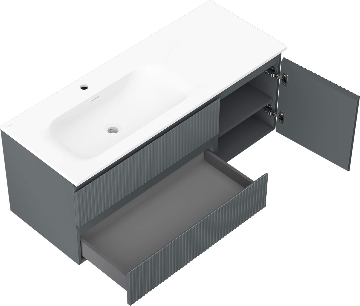 The cutout in the drawer is designed in such a way as to accommodate the siphon, which is essential in sink installations. This allows the furniture to be fully functional without having to give up drawer space for the installation.