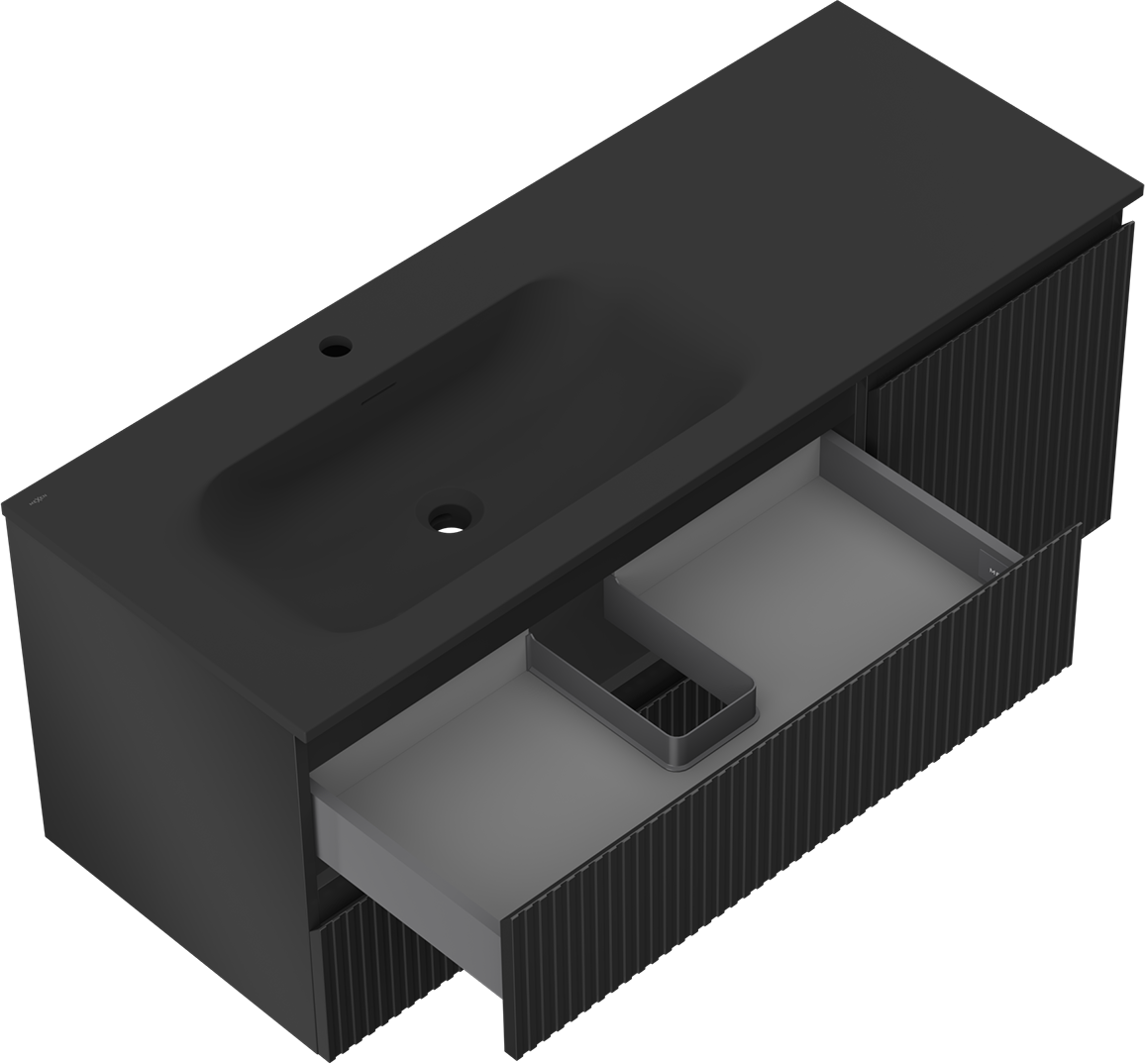 The cutout in the drawer is designed in such a way as to accommodate the siphon, which is essential in sink installations. This allows the furniture to be fully functional without having to give up drawer space for the installation.