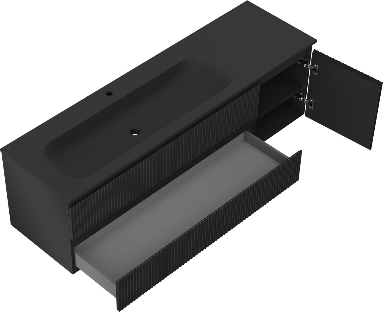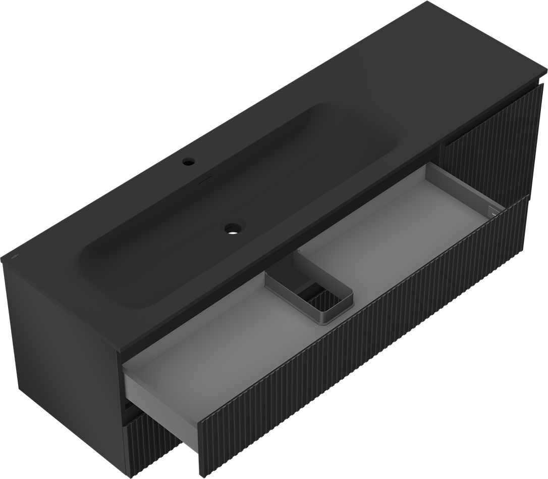 The cutout in the drawer is designed in such a way as to accommodate the siphon, which is essential in sink installations. This allows the furniture to be fully functional without having to give up drawer space for the installation.