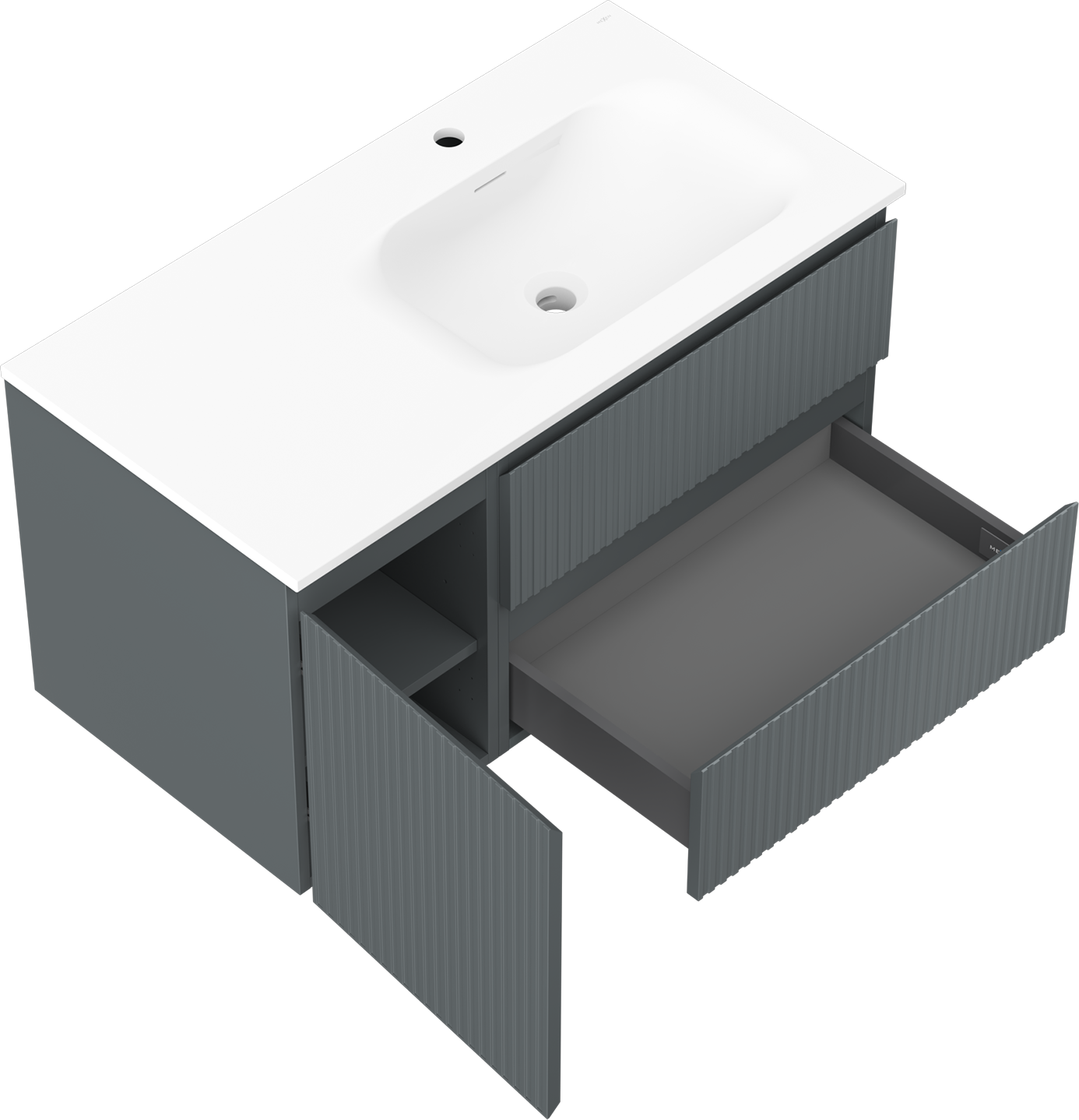 The cutout in the drawer is designed in such a way as to accommodate the siphon, which is essential in sink installations. This allows the furniture to be fully functional without having to give up drawer space for the installation.
