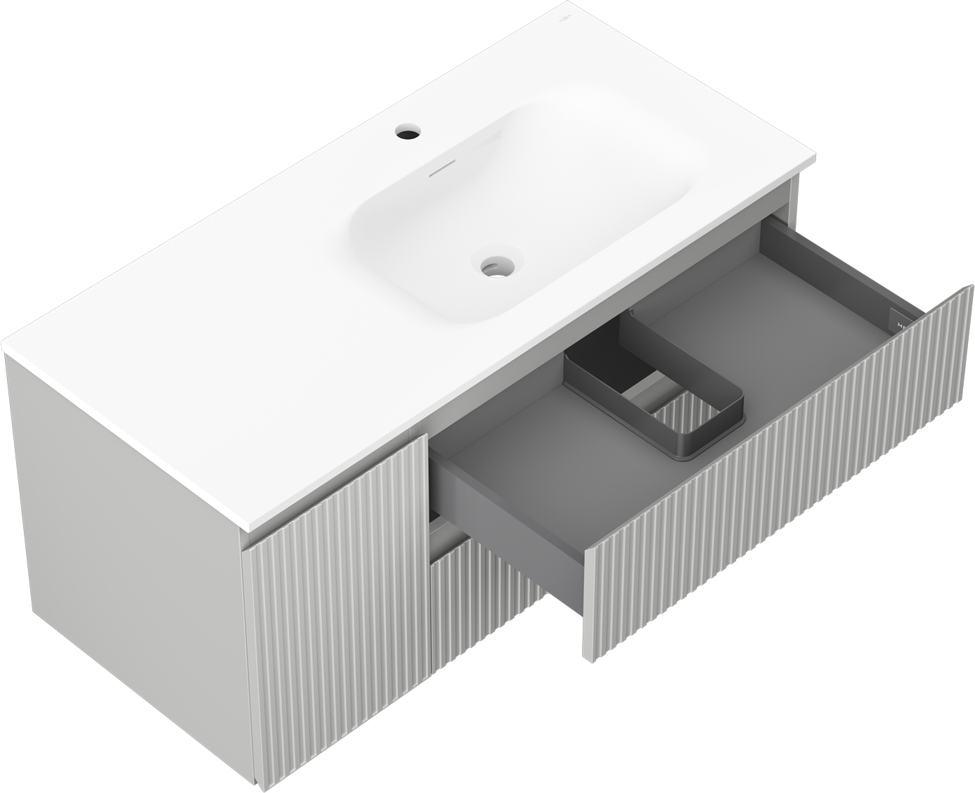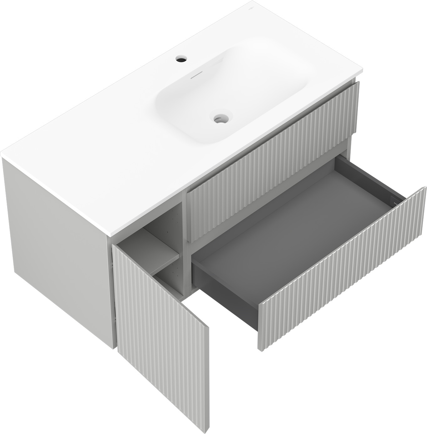 The cutout in the drawer is designed in such a way as to accommodate the siphon, which is essential in sink installations. This allows the furniture to be fully functional without having to give up drawer space for the installation.