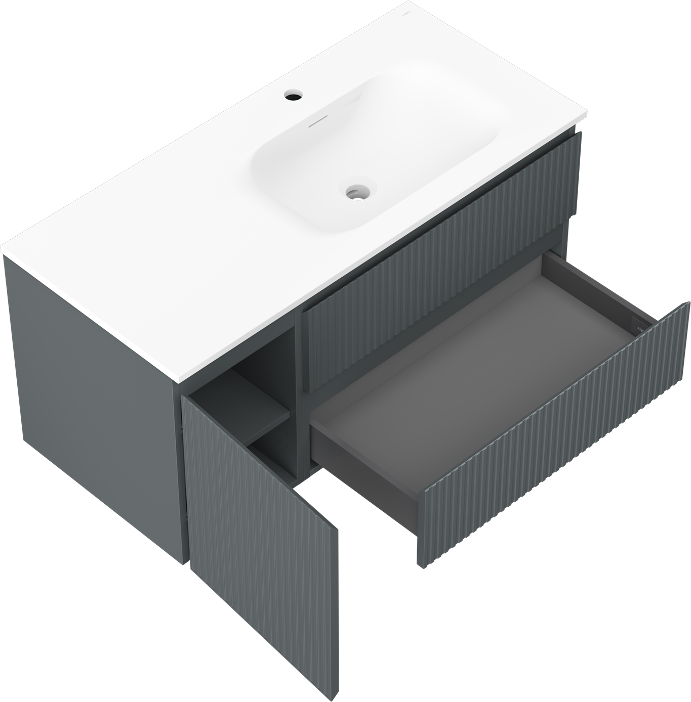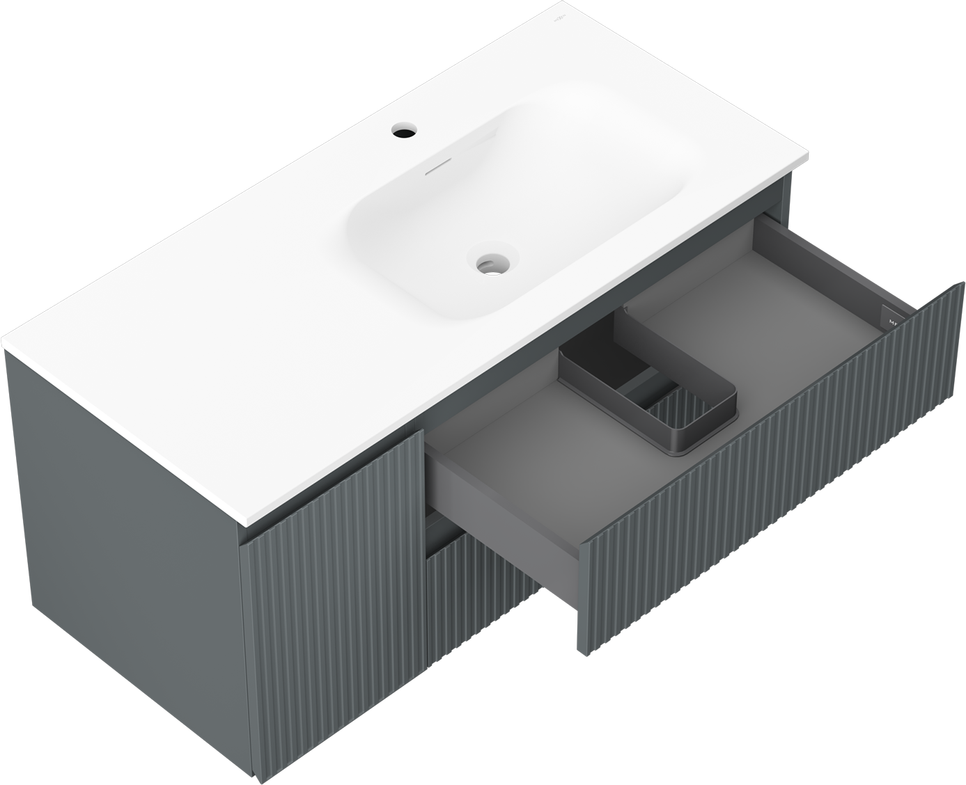 The cutout in the drawer is designed in such a way as to accommodate the siphon, which is essential in sink installations. This allows the furniture to be fully functional without having to give up drawer space for the installation.