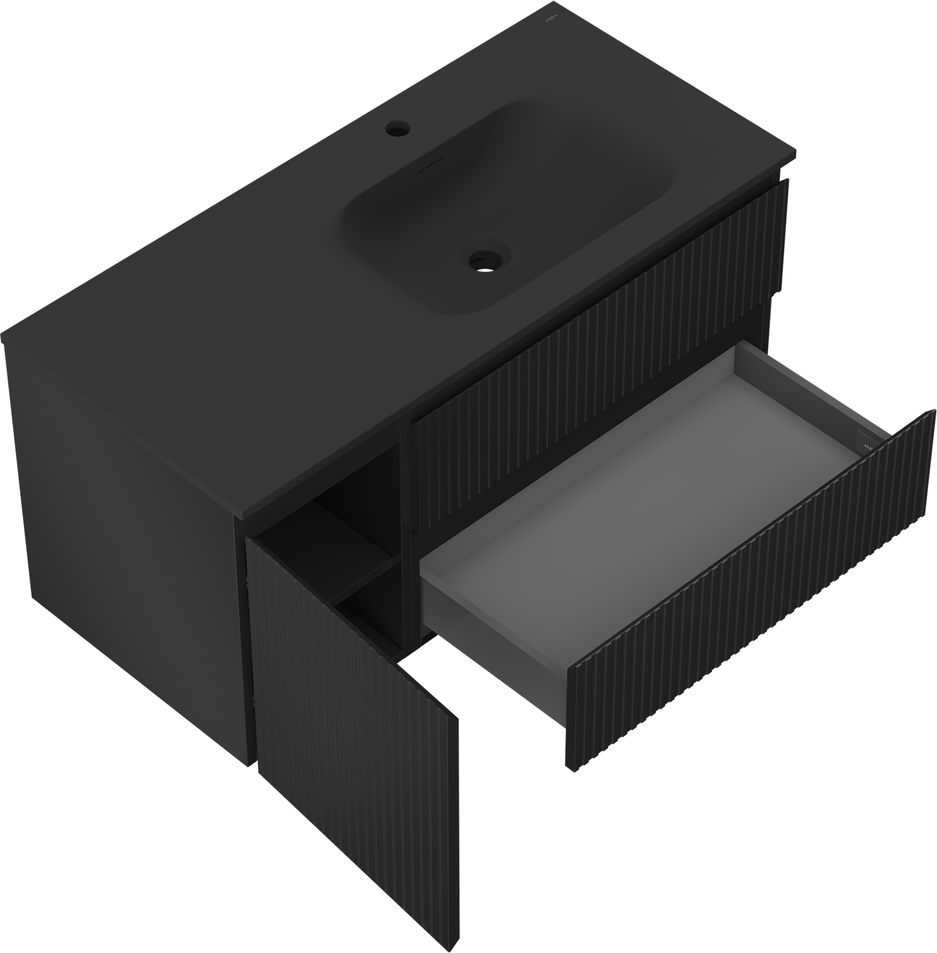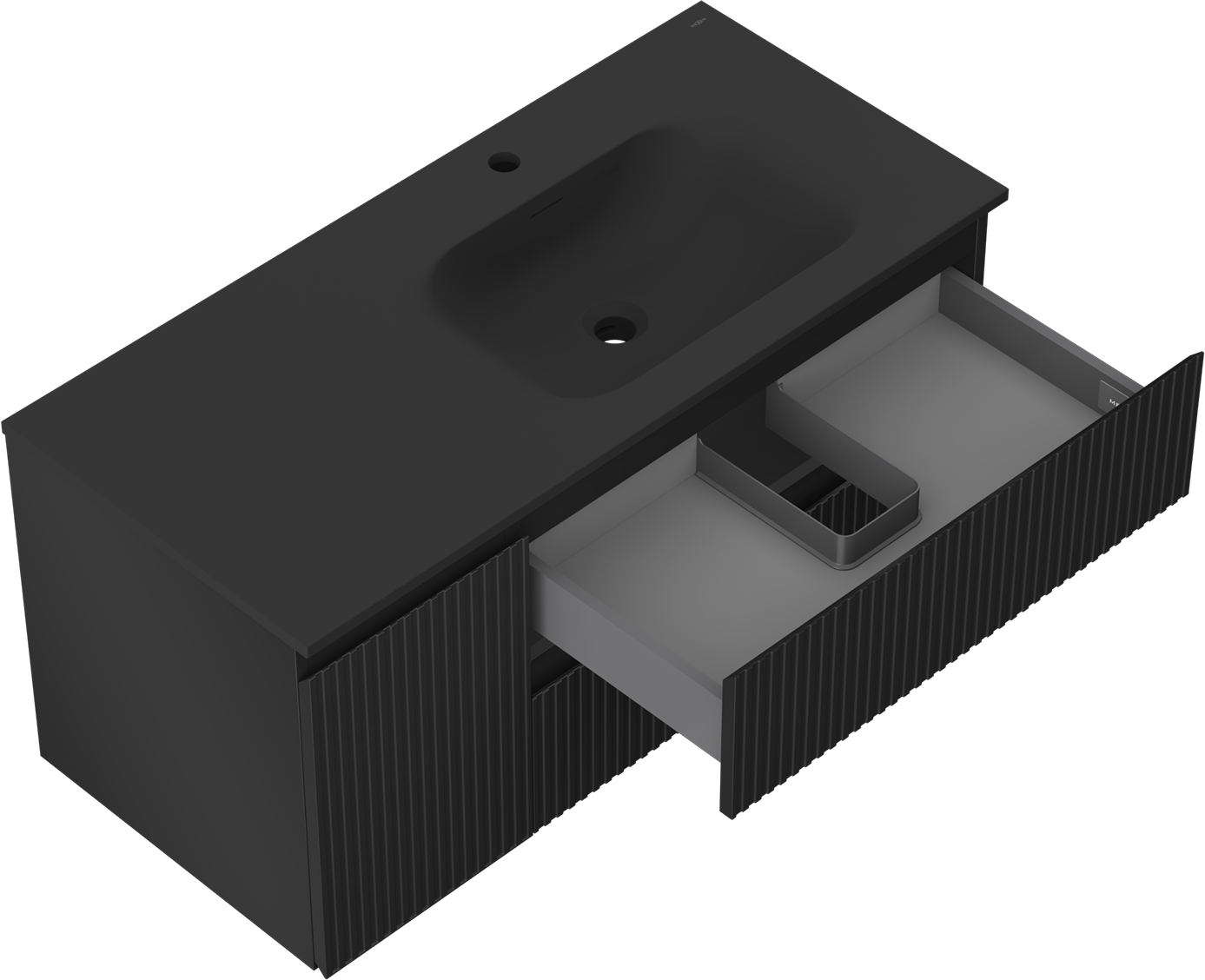 The cutout in the drawer is designed in such a way as to accommodate the siphon, which is essential in sink installations. This allows the furniture to be fully functional without having to give up drawer space for the installation.
