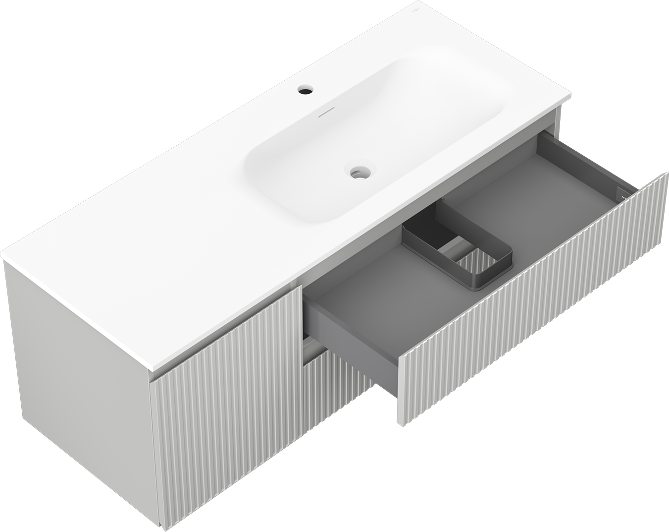 The cutout in the drawer is designed in such a way as to accommodate the siphon, which is essential in sink installations. This allows the furniture to be fully functional without having to give up drawer space for the installation.
