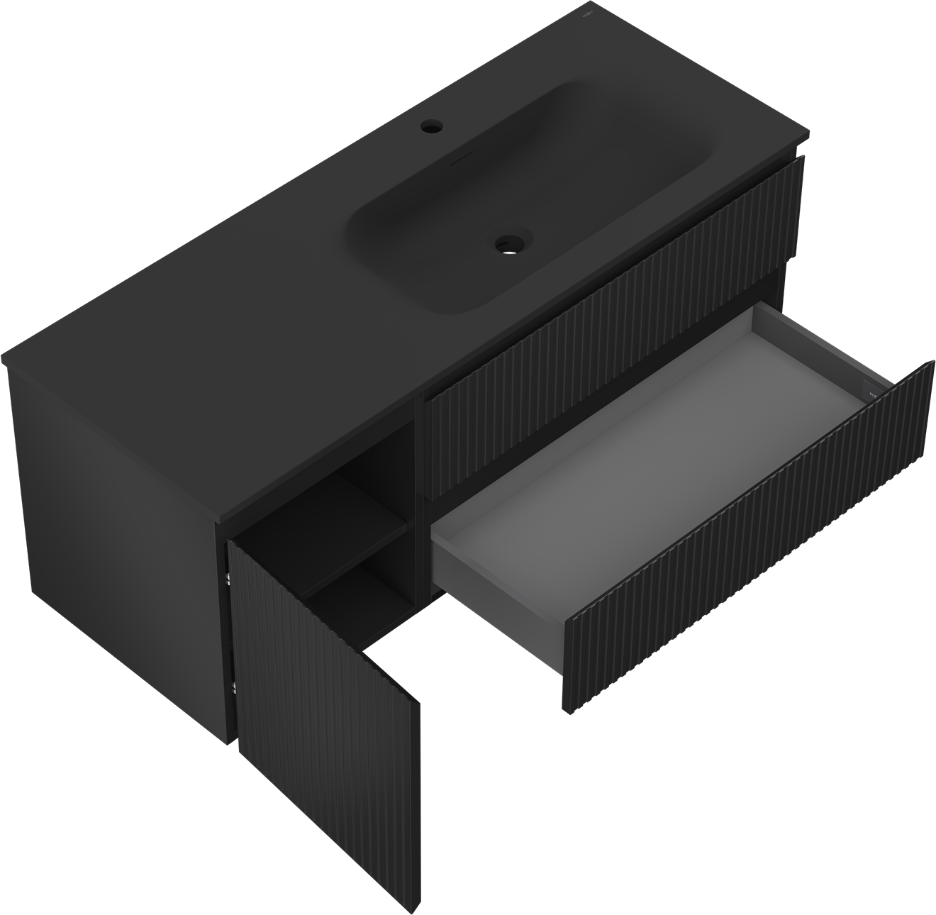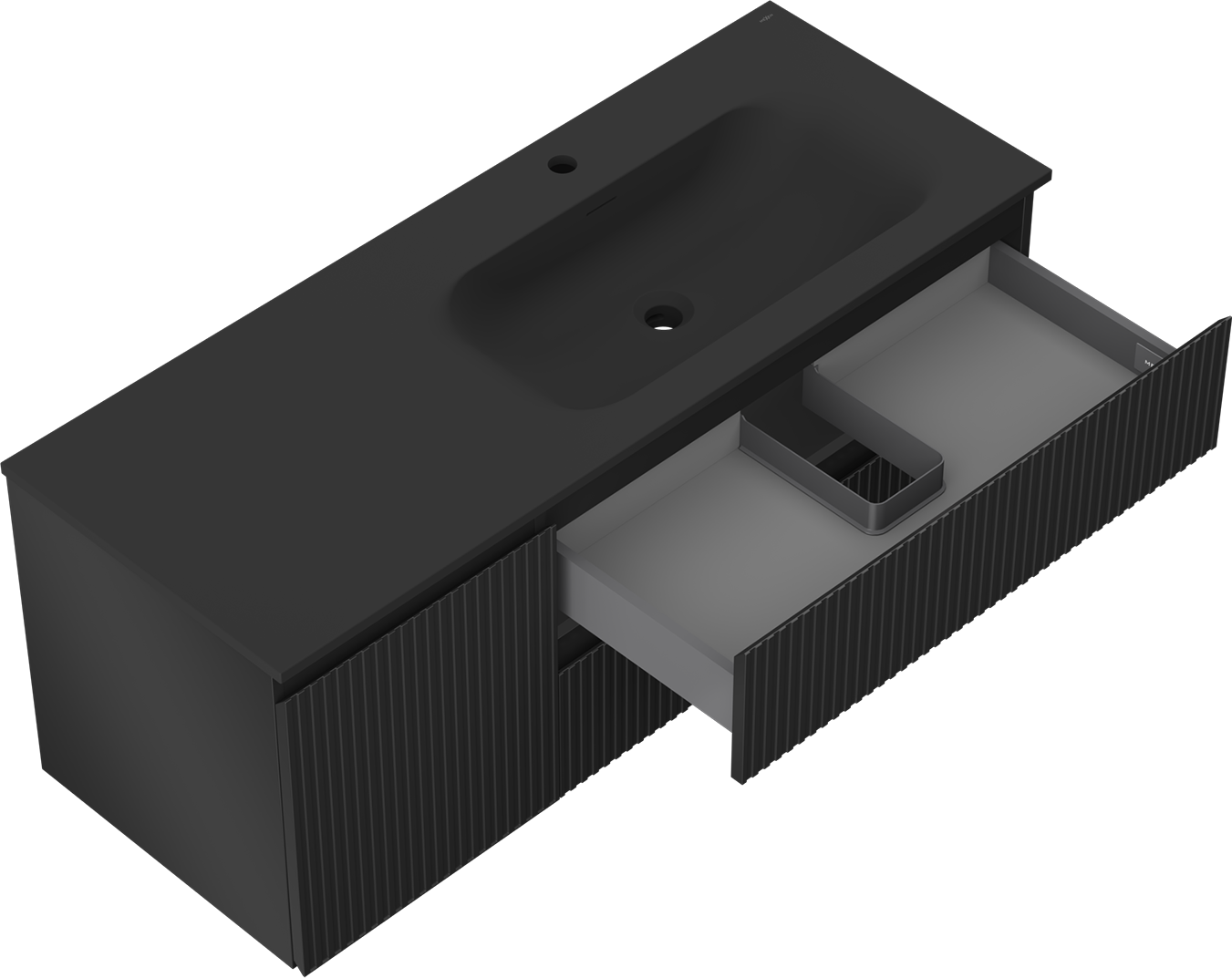 The cutout in the drawer is designed in such a way as to accommodate the siphon, which is essential in sink installations. This allows the furniture to be fully functional without having to give up drawer space for the installation.