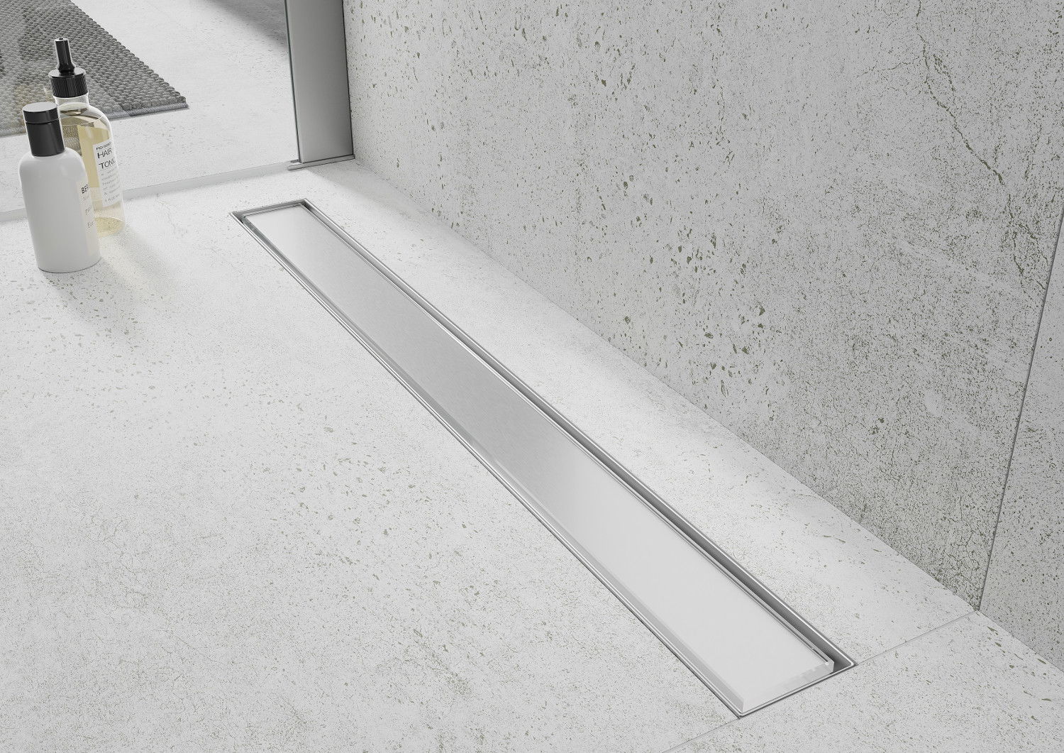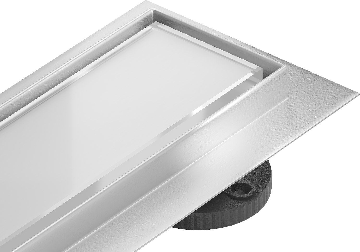 The linear drain is mounted at a depth of only 52 mm. The low depth allows for easier surface preparation for the drain installation and easy leveling, ensuring high aesthetics and effective water drainage.