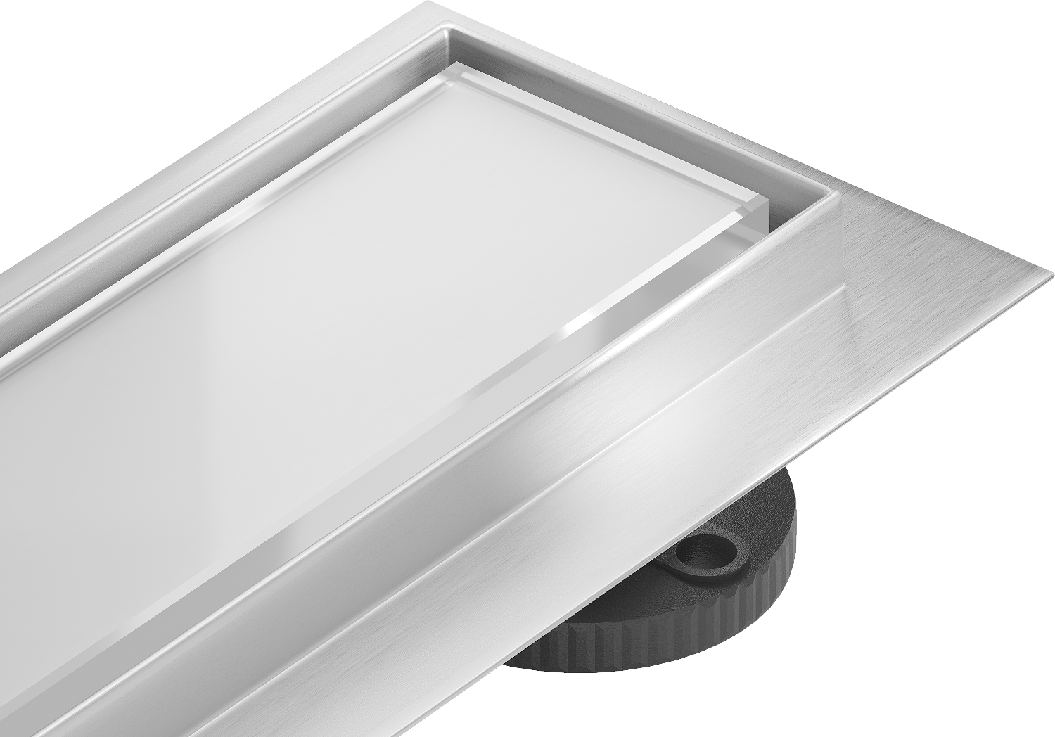 The linear drain is mounted at a depth of only 52 mm. The low depth allows for easier surface preparation for the drain installation and easy leveling, ensuring high aesthetics and effective water drainage.