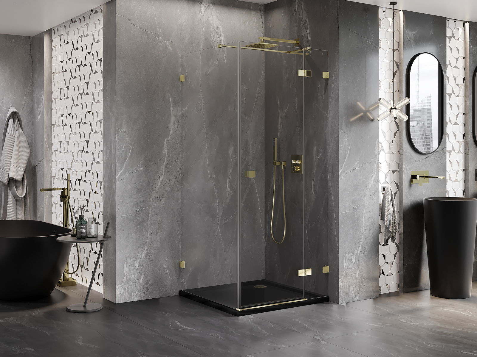 A handy and comfortable handle made from durable and resistant metal. Its trendy shape combined with a finish matched to the colour of the profiles gives the whole a modern and stylish look, highlighting the aesthetics of every bathroom.