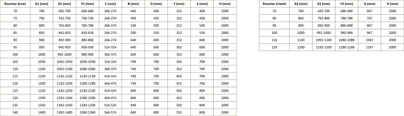 Size: 85x70 cm (left door 85 cm, side panel 70 cm)