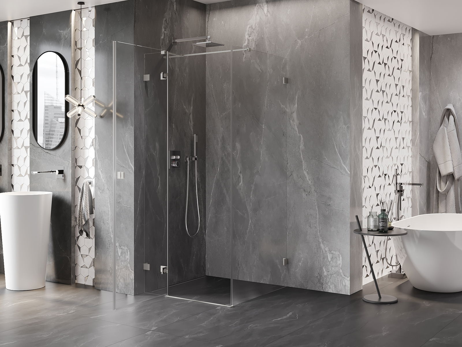 A handy and comfortable handle made from durable and resistant metal. Its trendy shape combined with a finish matched to the colour of the profiles gives the whole a modern and stylish look, highlighting the aesthetics of every bathroom.
