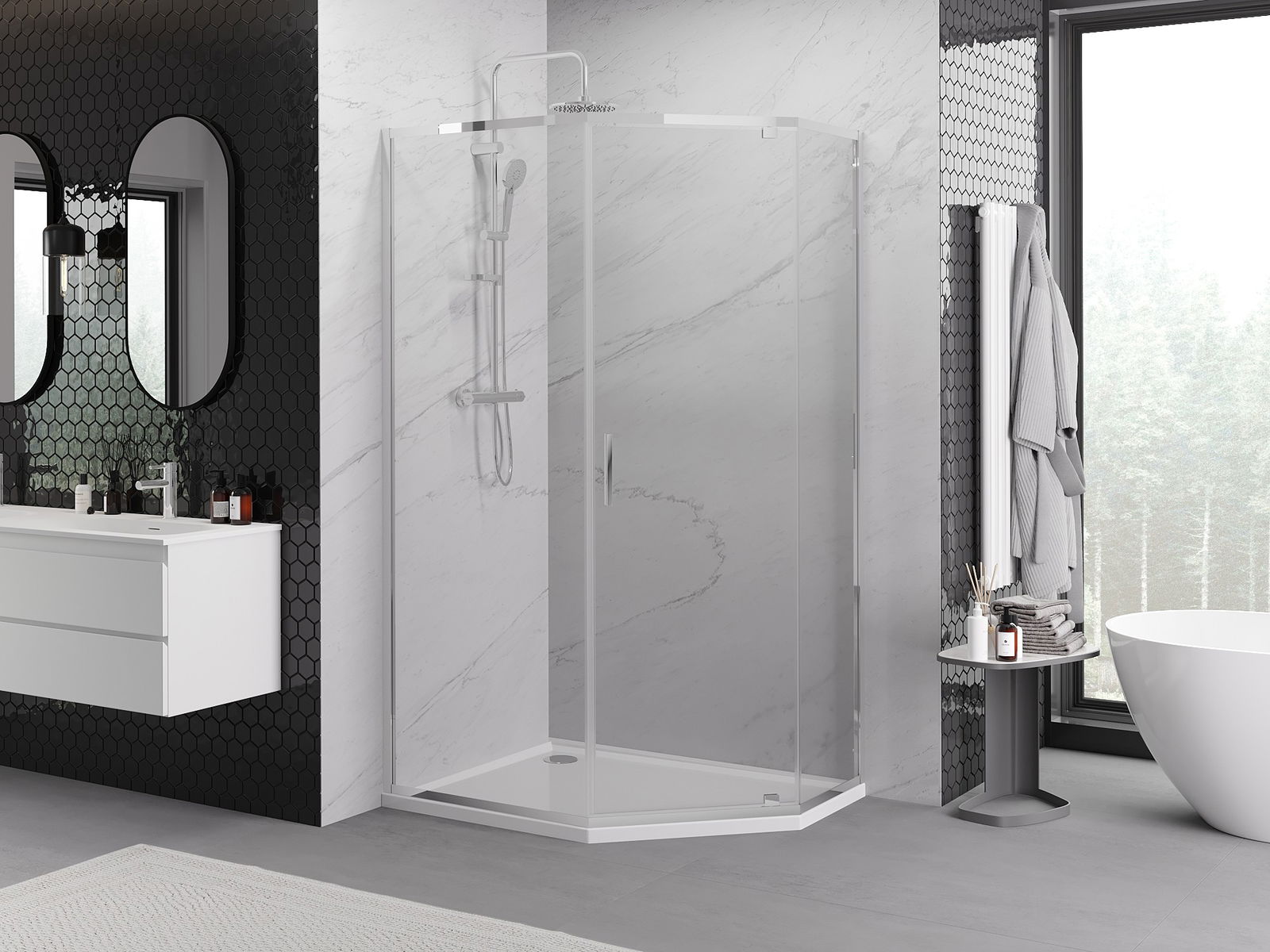 Mexen Exo pentagonal hinged shower enclosure 90 x 80 cm, transparent, chrome - 812-090-080-01-00