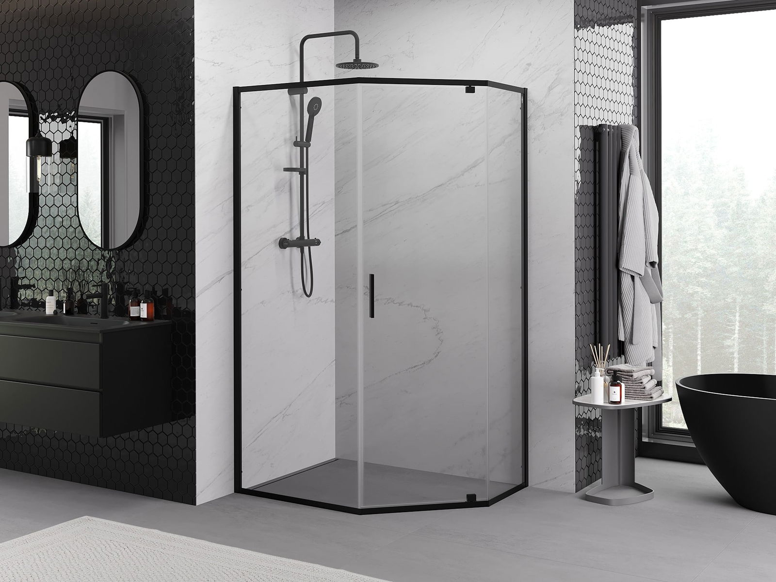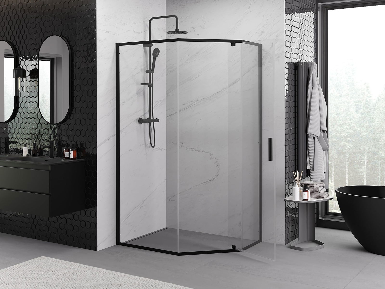 Mexen Exo pentagonal pivot shower cabin 100 x 80 cm, transparent, black - 812-100-080-70-00