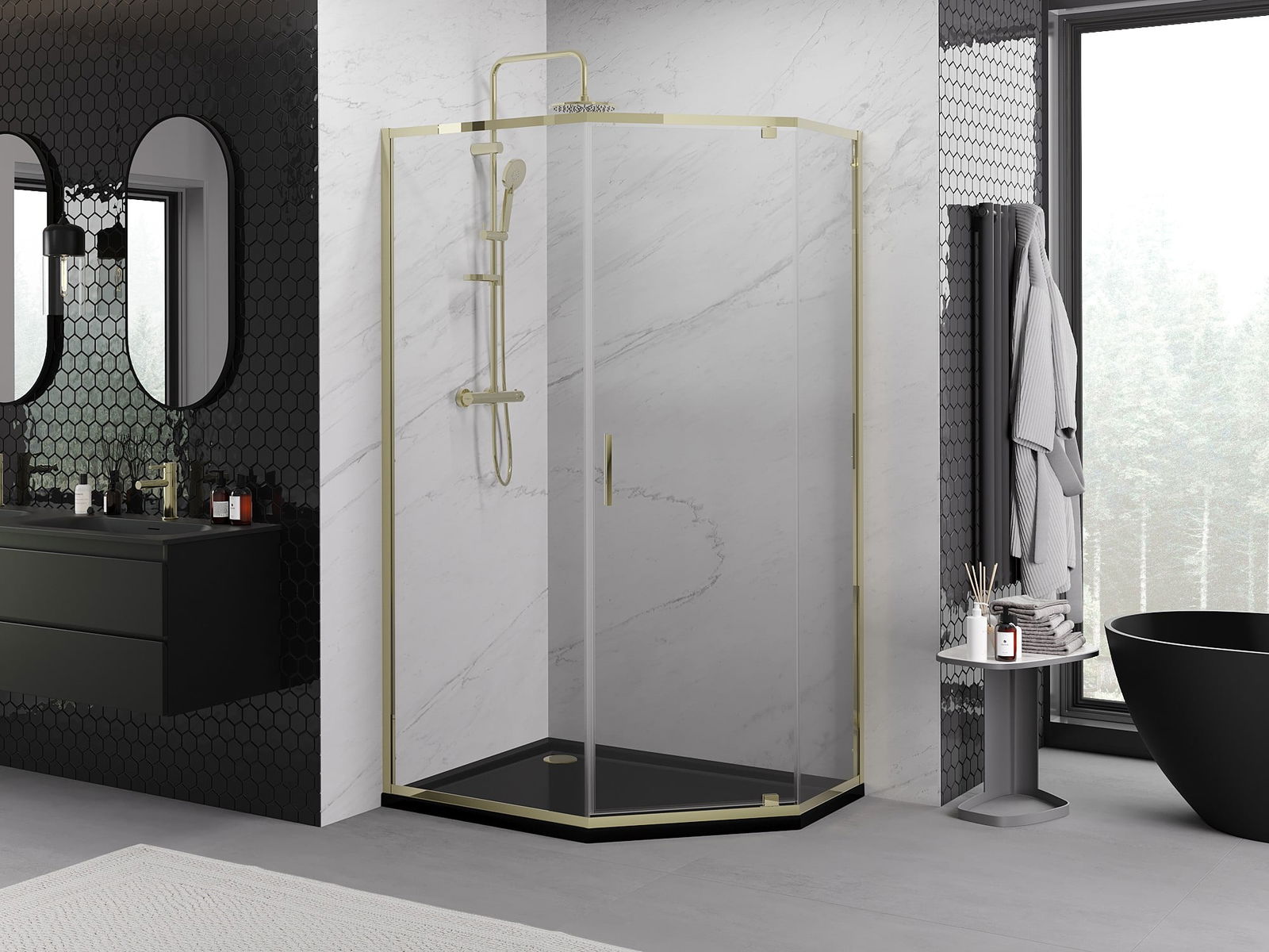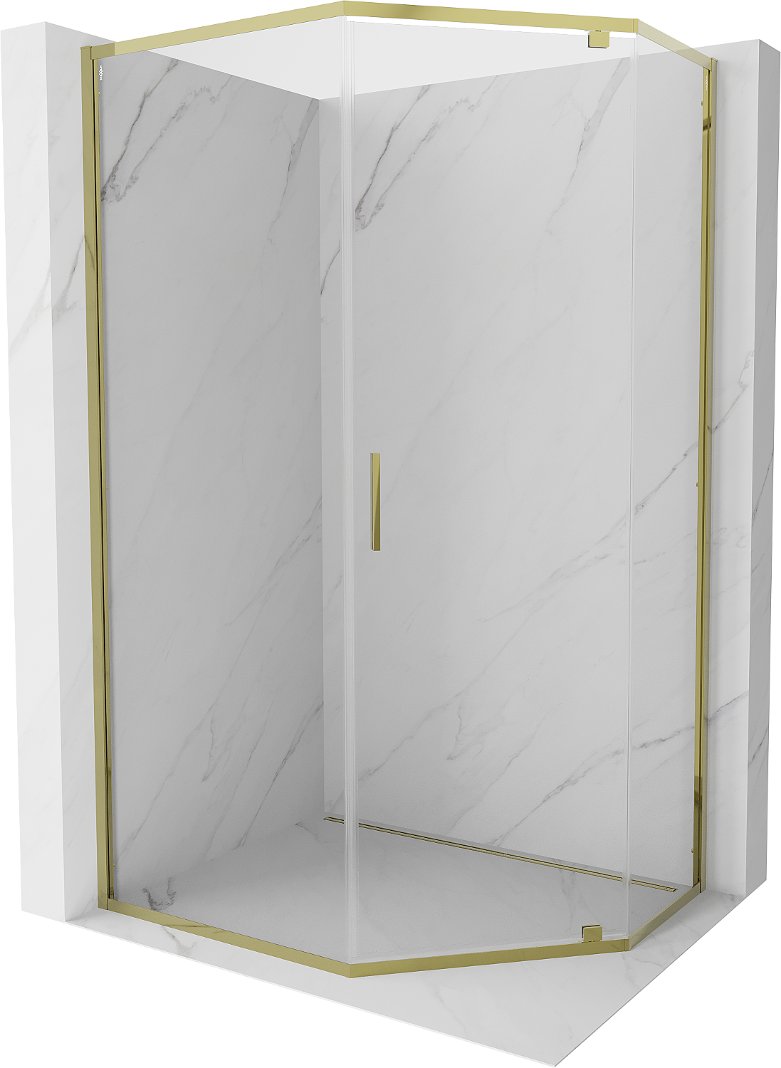 Mexen Exo pentagonal hinged shower cabin 100 x 80 cm, transparent, gold - 812-100-080-50-00