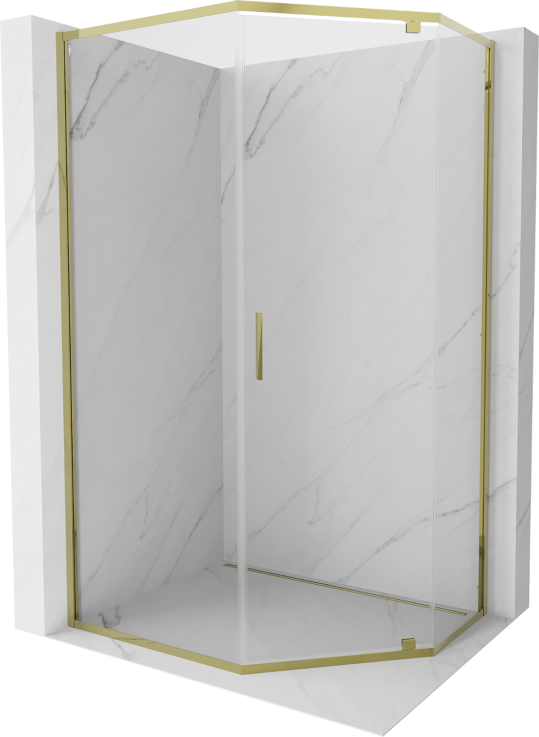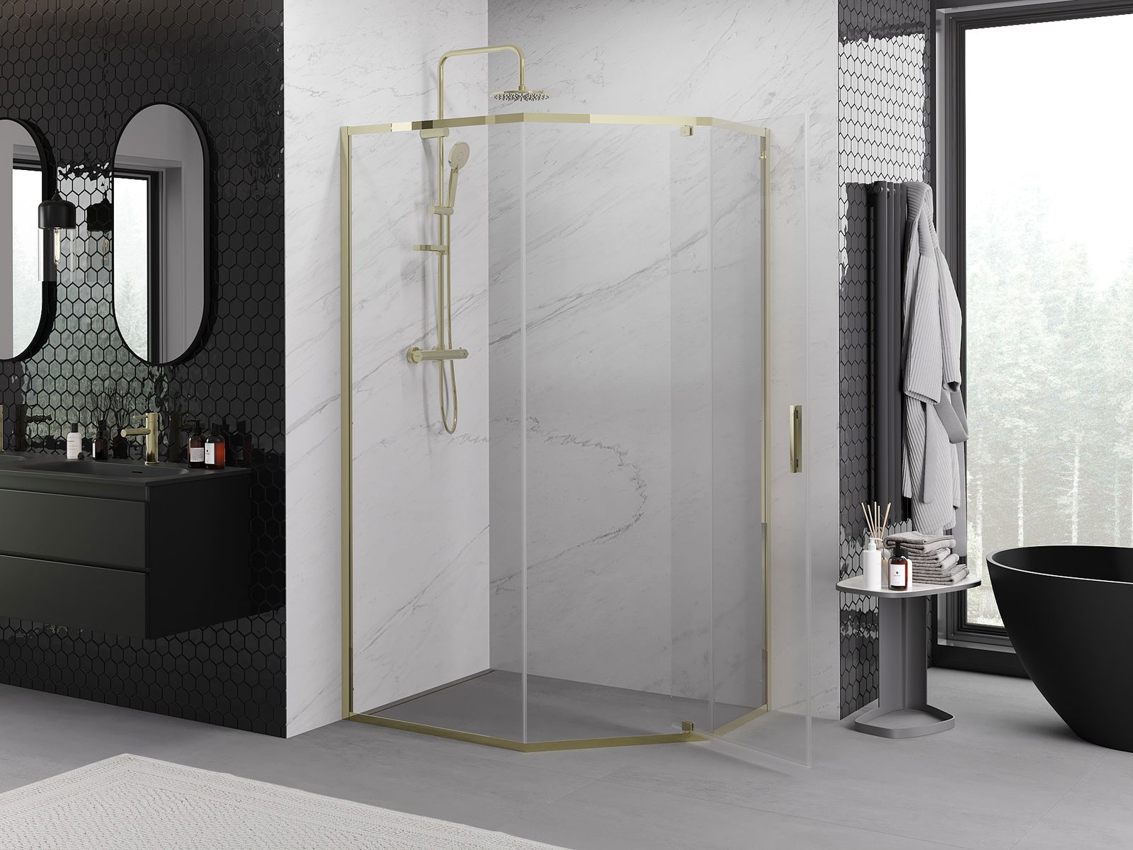 Mexen Exo Pentagonal Hinged Shower Enclosure 100 x 90 cm, Transparent, Gold - 812-100-090-50-00